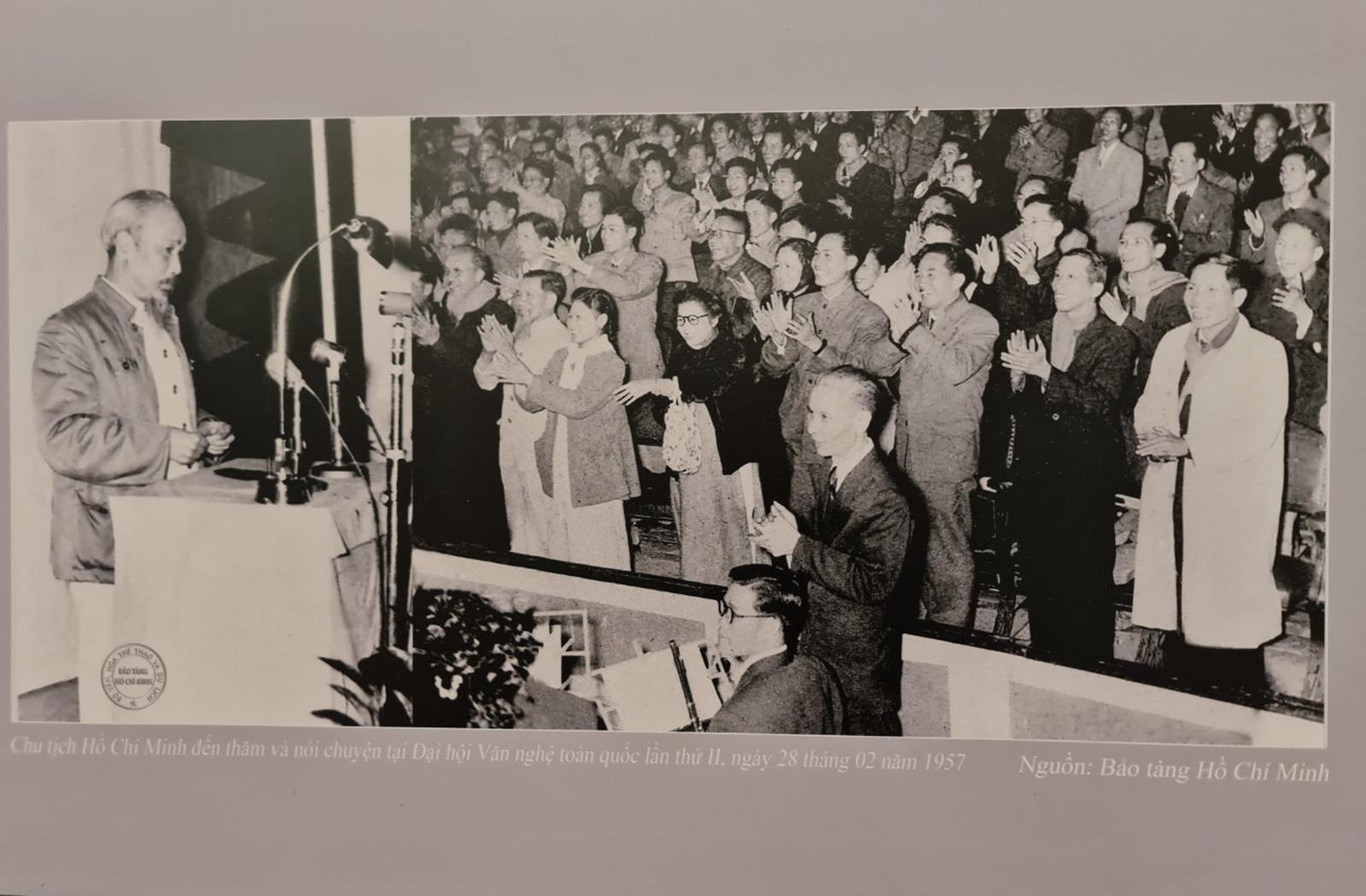 Triển lãm cũng giới thiệu những hình ảnh tư liệu về Bác Hồ và các đồng chí lãnh đạo Đảng, Nhà nước với các hoạt động văn hóa, văn nghệ, với văn nghệ sĩ.
