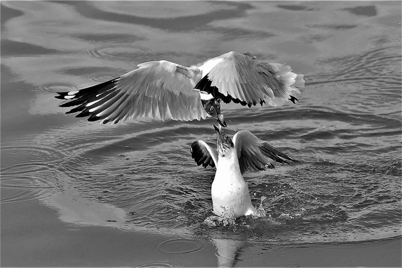 Chim hải âu, những người bạn thân thiết của vùng biển phương Nam quê hương nghệ sĩ cũng được ghi lại hết sức sống động. Hải âu bay lượn, săn mồi, soi bóng trên mặt nước hay vươn cao giữa bầu trời đều có những nét đẹp riêng.