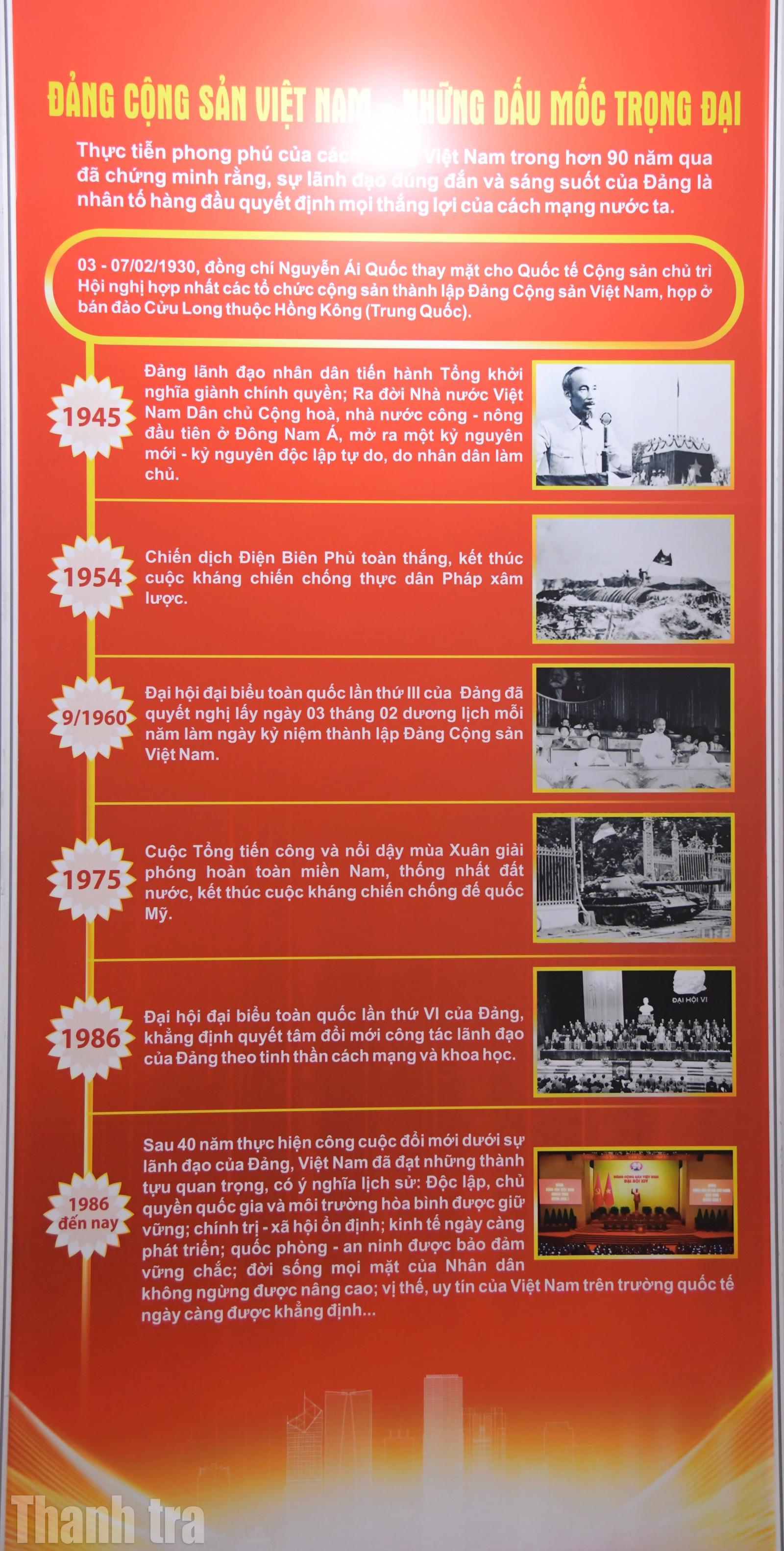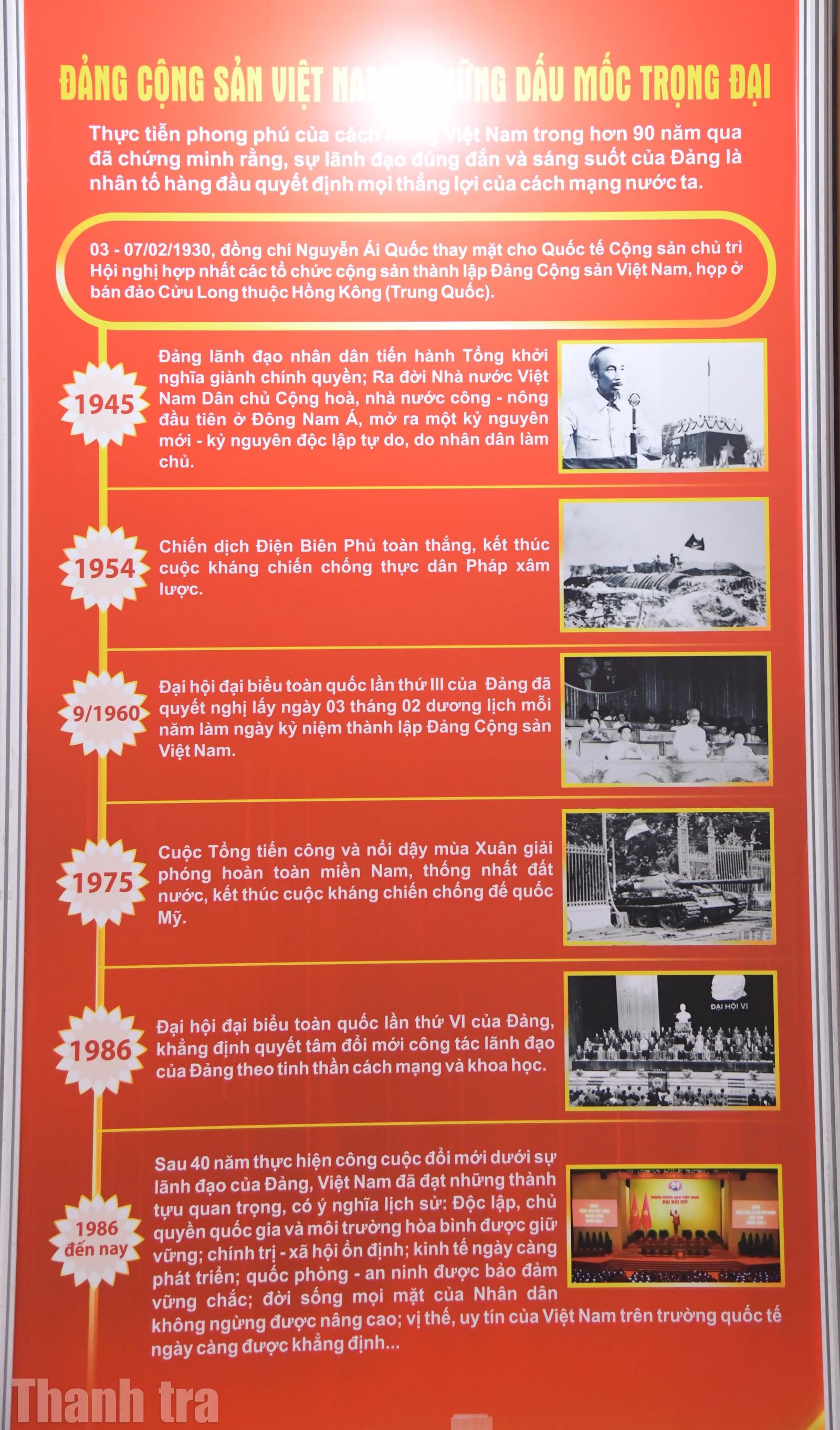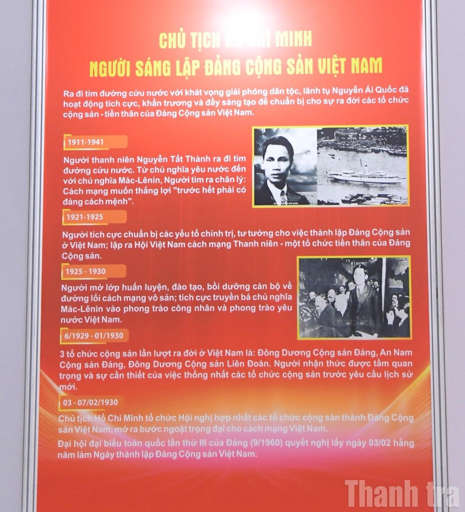 “Đảng Cộng sản Việt Nam - Người lãnh đạo, tổ chức mọi thắng lợi của cách mạng Việt Nam”, giới thiệu sự ra đời của Đảng, vai trò to lớn của Chủ tịch Hồ Chí Minh và những thắng lợi vẻ vang của cách mạng Việt Nam dưới sự lãnh đạo của Đảng.