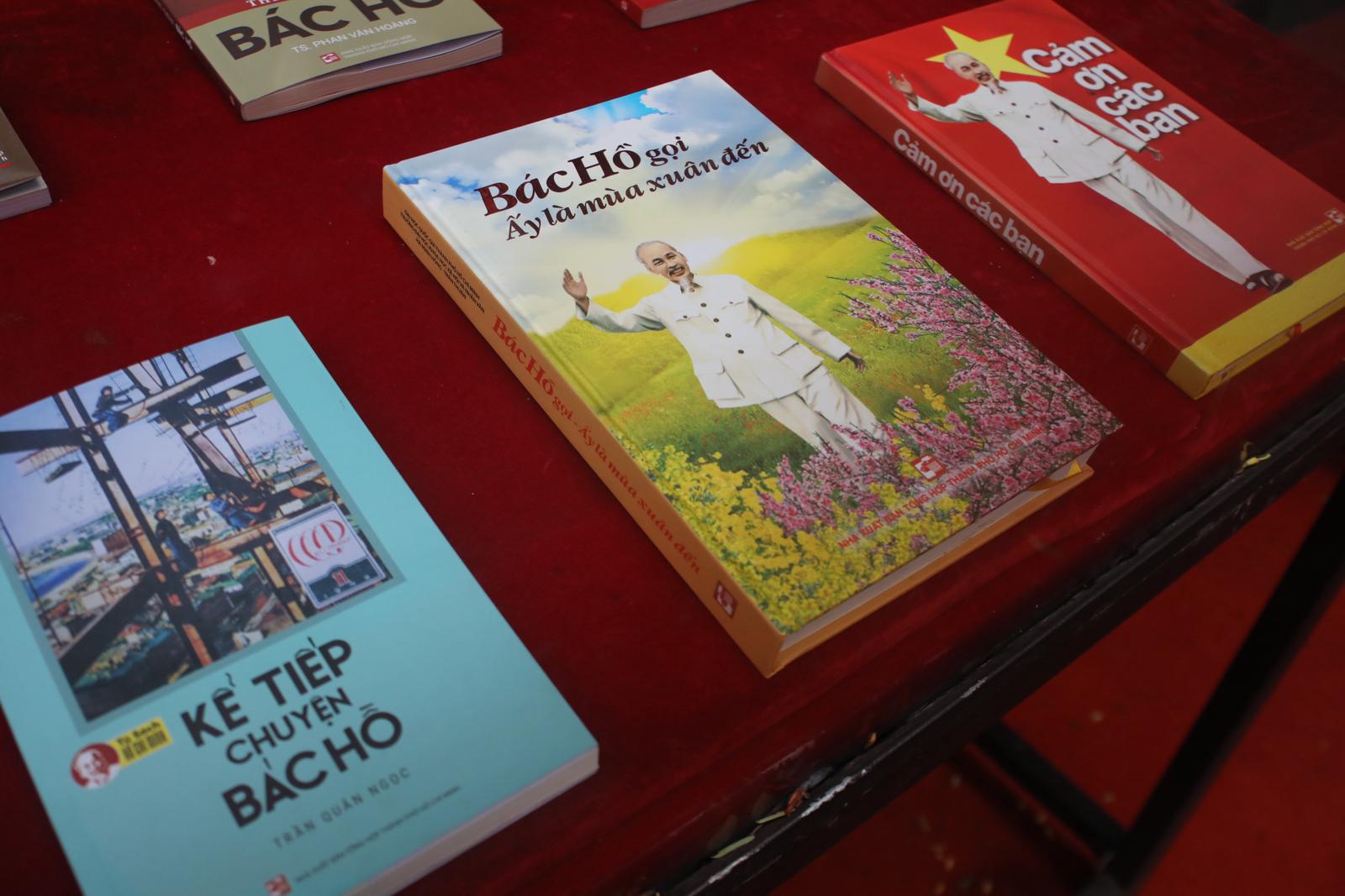 Nhiều ấn phẩm về cuộc đời, sự nghiệp của Chủ tịch Hồ Chí Minh được trưng bày tại triển lãm. Ảnh: GD