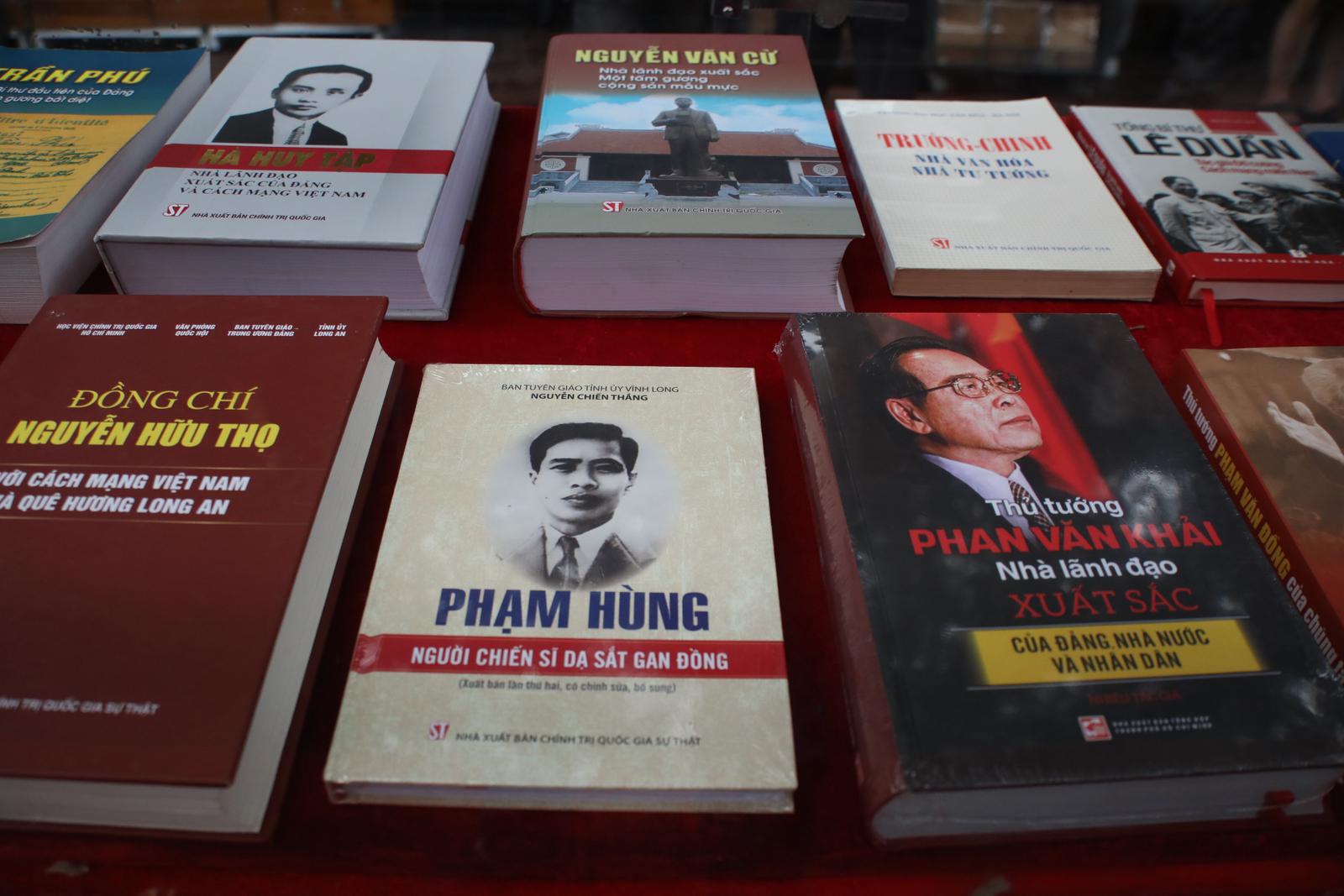 Tủ sách về các đồng chí lãnh đạo Đảng và cách mạng Việt Nam trưng bày nhiều ấn phẩm phản ánh cuộc đời, sự nghiệp cách mạng, những cống hiến to lớn của các đồng chí lãnh đạo Đảng và cách mạng Việt Nam qua các thời kỳ như: Các Tổng Bí thư Trần Phú, Hà Huy Tập, Nguyễn Văn Cừ, Trường Chinh, Lê Duẩn, Nguyễn Văn Linh, Đỗ Mười…. Các Thủ tướng Phạm Văn Đồng, Phạm Hùng, Võ Võ Kiệt, Phan Văn Khải... Các Đại tướng Võ Nguyên Giáp, Mai Chí Thọ... Các Phó Chủ tịch nước Nguyễn Thị Bình, Nguyễn Thị Định… Nhiều ấn phẩm trong tủ sách này là kết quả nghiên cứu thuộc Chương trình Sưu tầm tài liệu, viết tiểu sử các đồng chí lãnh đạo tiền bối tiêu biểu của Đảng và cách mạng Việt Nam. Sự tận tụy, sẵn sàng cống hiến, hy sinh vì sự nghiệp cách mạng của các đồng chí lãnh đạo là tấm gương sáng cho các thế hệ hôm nay và mai sau học tập, noi theo.