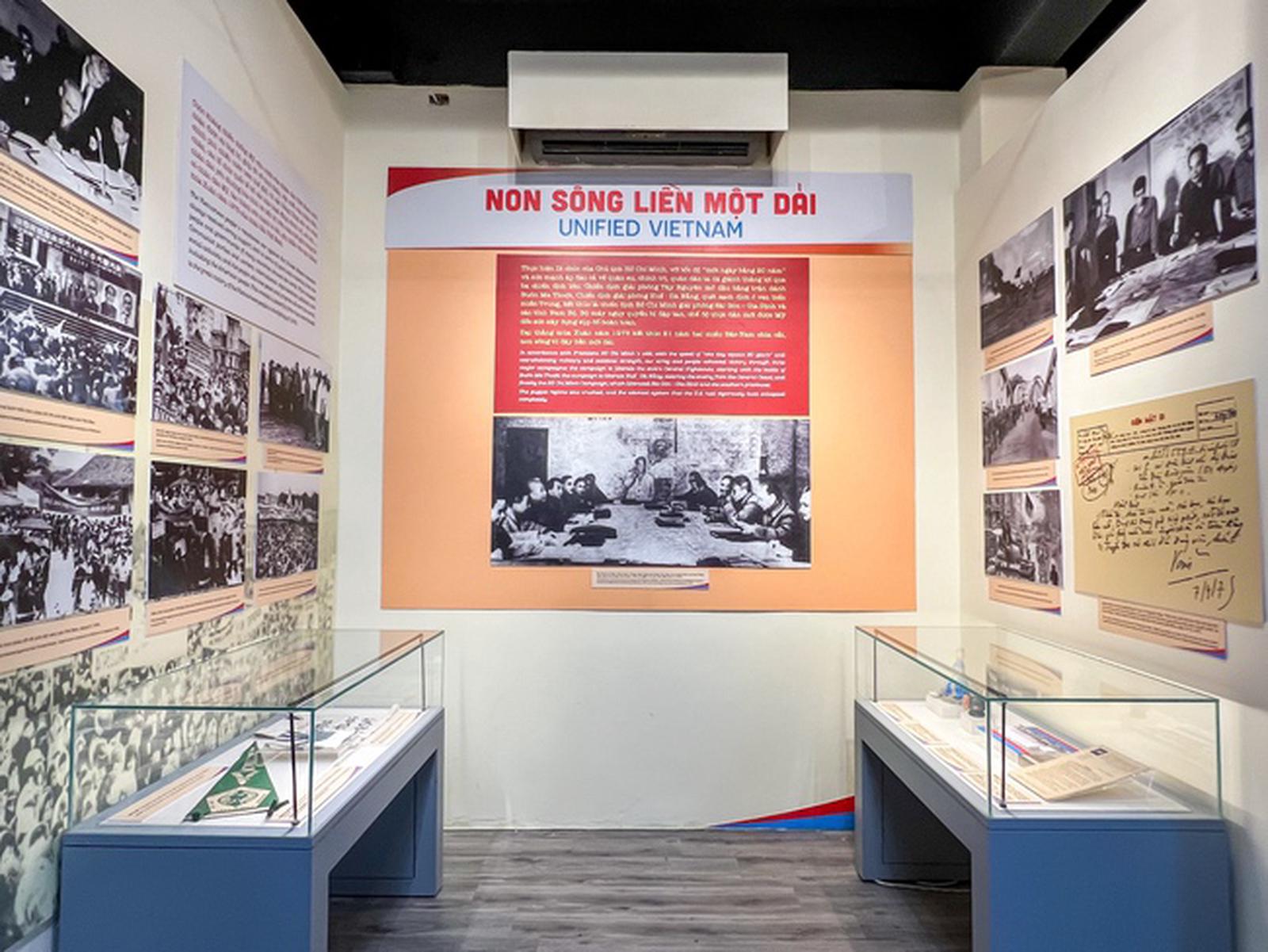 Đất nước Việt Nam thống nhất, non sông liền một dải thông qua các tài liệu, hiện vật tiêu biểu như: Bộ Chính trị Ban Chấp hành Trung ương Đảng Lao động Việt Nam họp quyết định mở cuộc Tổng tiến công và nổi dậy mùa Xuân 1975 (từ ngày 18/12/1974 đến 8/1/1975); Quân Giải phóng tiến công làm chủ thị xã Buôn Ma Thuột, Đắk Lắk, ngày 10/3/1975; Quân Giải phóng hành quân thần tốc vượt eo biển miền Trung tiến về Sài Gòn, ngày 9/4/1975; Xe tăng Quân Giải phóng tiến vào đánh chiếm Dinh Tổng thống ngụy Sài Gòn, ngày 30/4/1975; Cờ Mặt trận Dân tộc Giải phóng miền Nam tung bay trên Dinh Tổng thống ngụy Sài Gòn, 11 giờ 30 phút ngày 30/4/1975;…