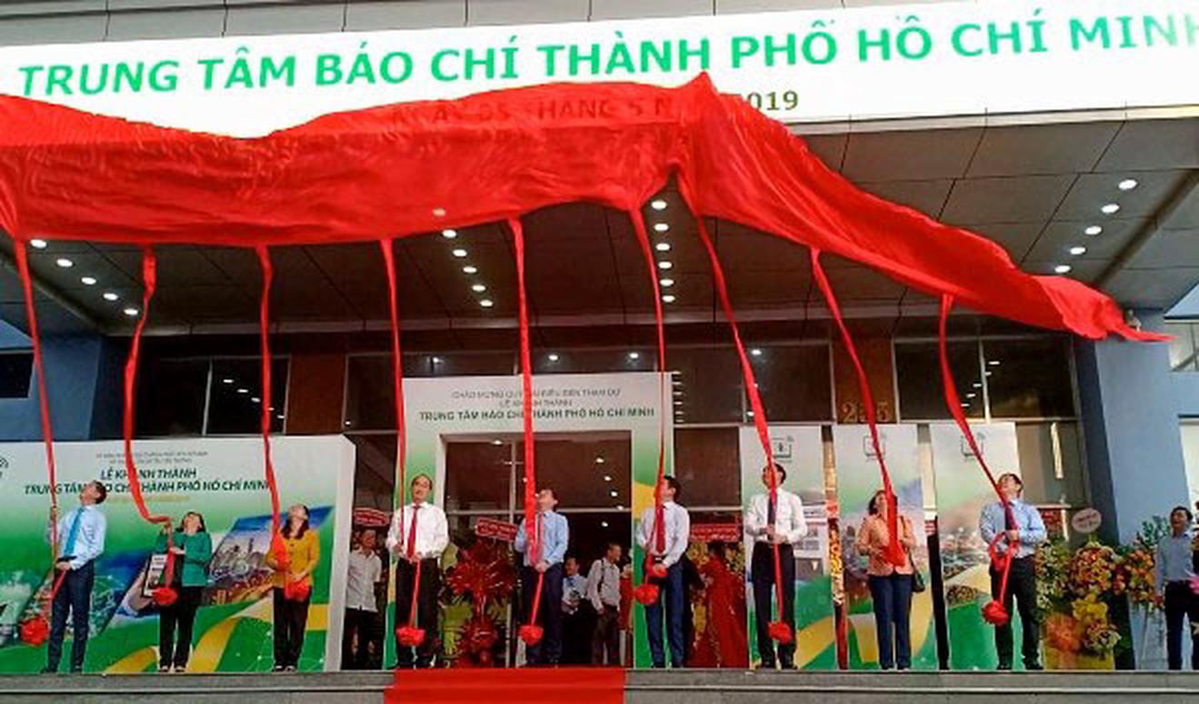 Đại biểu thực hiện nghi thức khánh thành Trung tâm Báo chí TP Hồ Chí Minh. Ảnh: CN