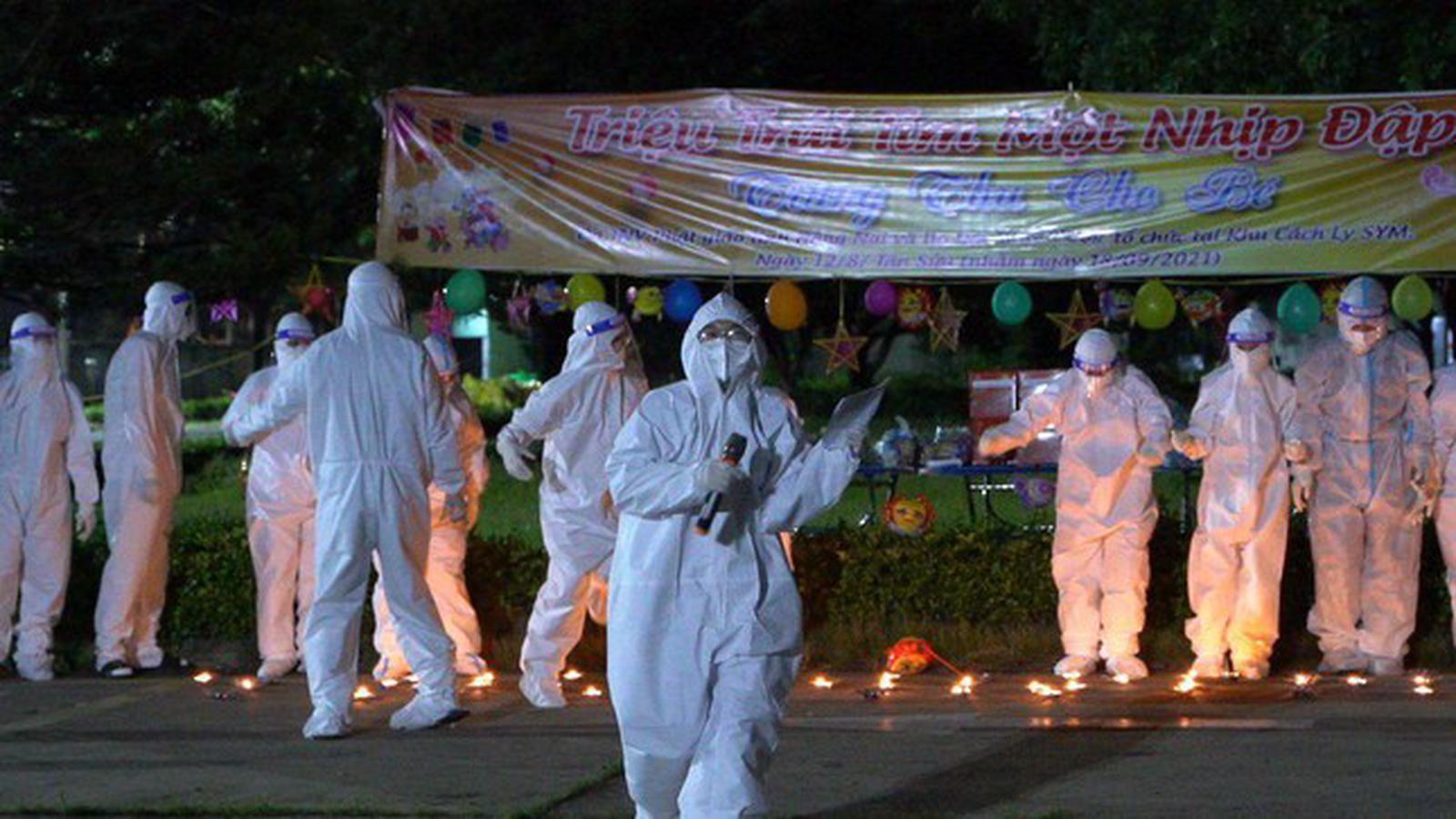 Đại đức Thích Thiện Mỹ - Trưởng ban Điều phối Tình nguyện viên Phật giáo, đại diện Quỹ Thiện nguyện Sen Vàng, chùa Viên Giác cho biết, nhóm tình nguyện viên Phật giáo đã kết hợp cùng bộ đội, y, bác sỹ tổ chức đêm Trung thu cho các bé với chủ đề "Triệu trái tim một nhịp đập" ngay tại sân khu cách ly SYM (phường Tam Hiệp, TP Biên Hòa, tỉnh Đồng Nai) tối 13/8 Âm lịch.