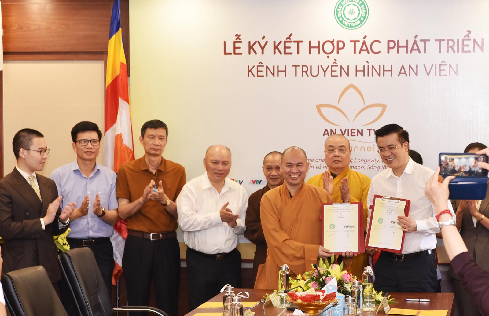 Buổi lễ ký kết hợp tác phát triển Kênh Truyền hình An Viên diễn ra sáng 8/8 tại chùa Quán Sứ, Hà Nội do Trung ương Giáo hội Phật giáo Việt Nam tổ chức.