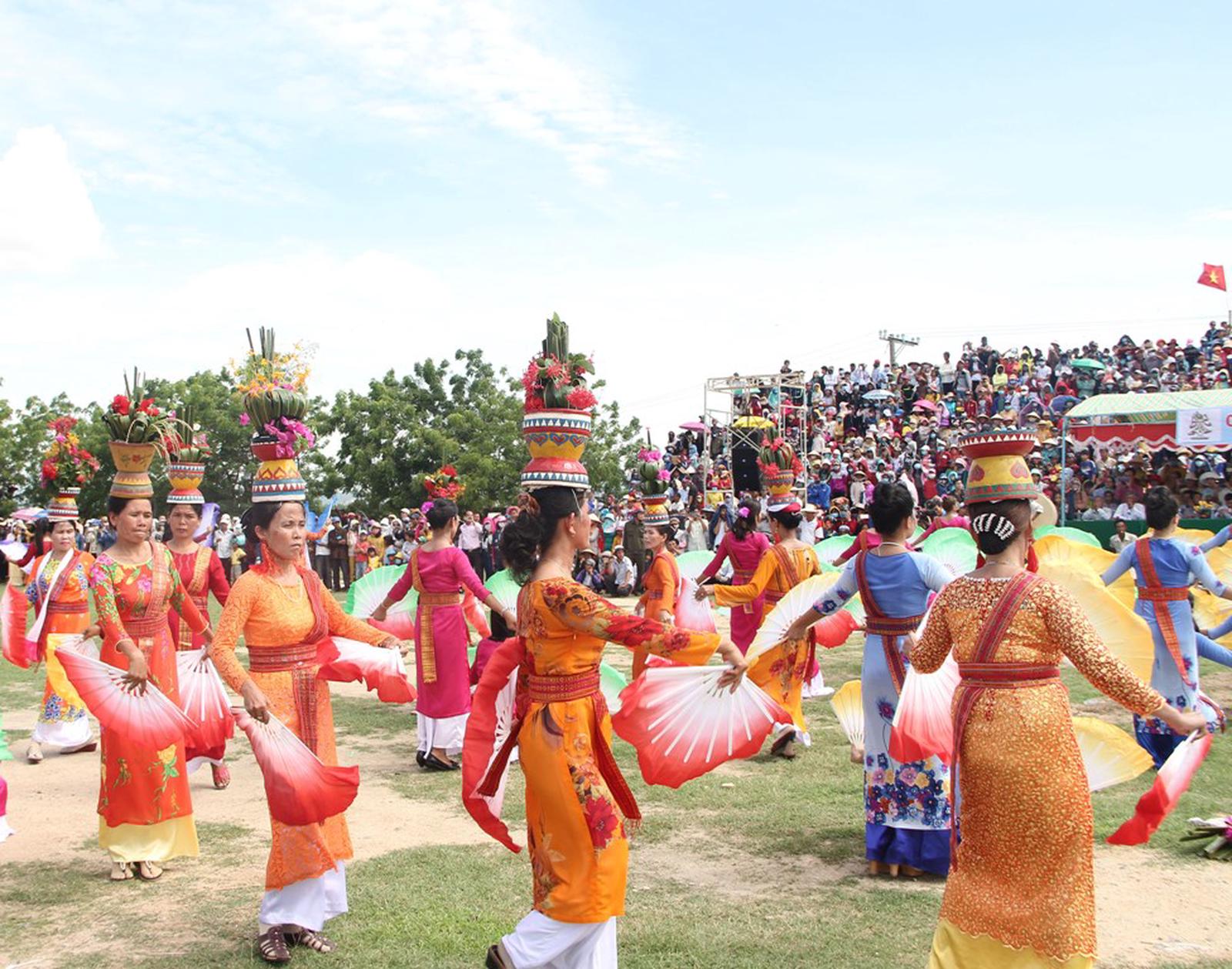 Múa vui mừng lễ rước y trang về làng Hữu Đức, xã Phước Hữu. Ảnh: Thanh Hòa