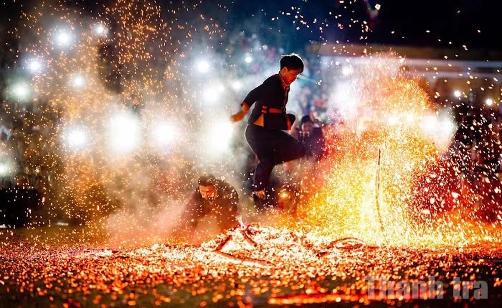 Màn nhảy lửa huyền bí do nghệ nhân và các chàng trai người Pà Thẻn thực hiện đã để lại ấn tượng sâu sắc trong lòng du khách. Ảnh: ND