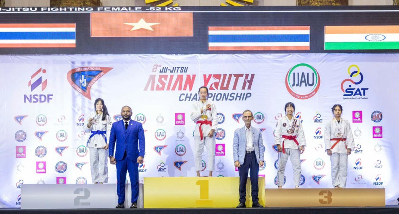 VĐV Triệu Thu Thủy, đạt 1 Huy chương Đồng nội dung đối kháng Gi 48kg nữ; VĐV Vương Trí Hải, đạt 1 Huy chương Đồng nội dung đối kháng Fighting 52kg nam; VĐV Lục Thị Phương, đạt 1 Huy chương Đồng nội dung đối kháng Fighting 40kg nữ; VĐV Triệu Tô Khánh, đạt 1 Huy chương Đồng nội dung đối kháng Newaza 40kg nam.