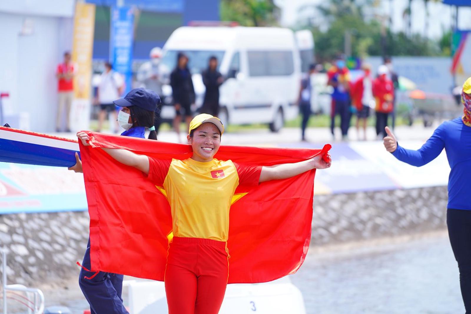 Chung kết đua thuyền đơn nữ Canoeing 1.000m: Vận động viên Nguyễn Thị Hương của Việt Nam thi đấu xuất sắc đoạt huy chương vàng; vận động viên Indonesia đoạt huy chương bạc và vận động viên Myanmar đoạt huy chương đồng.