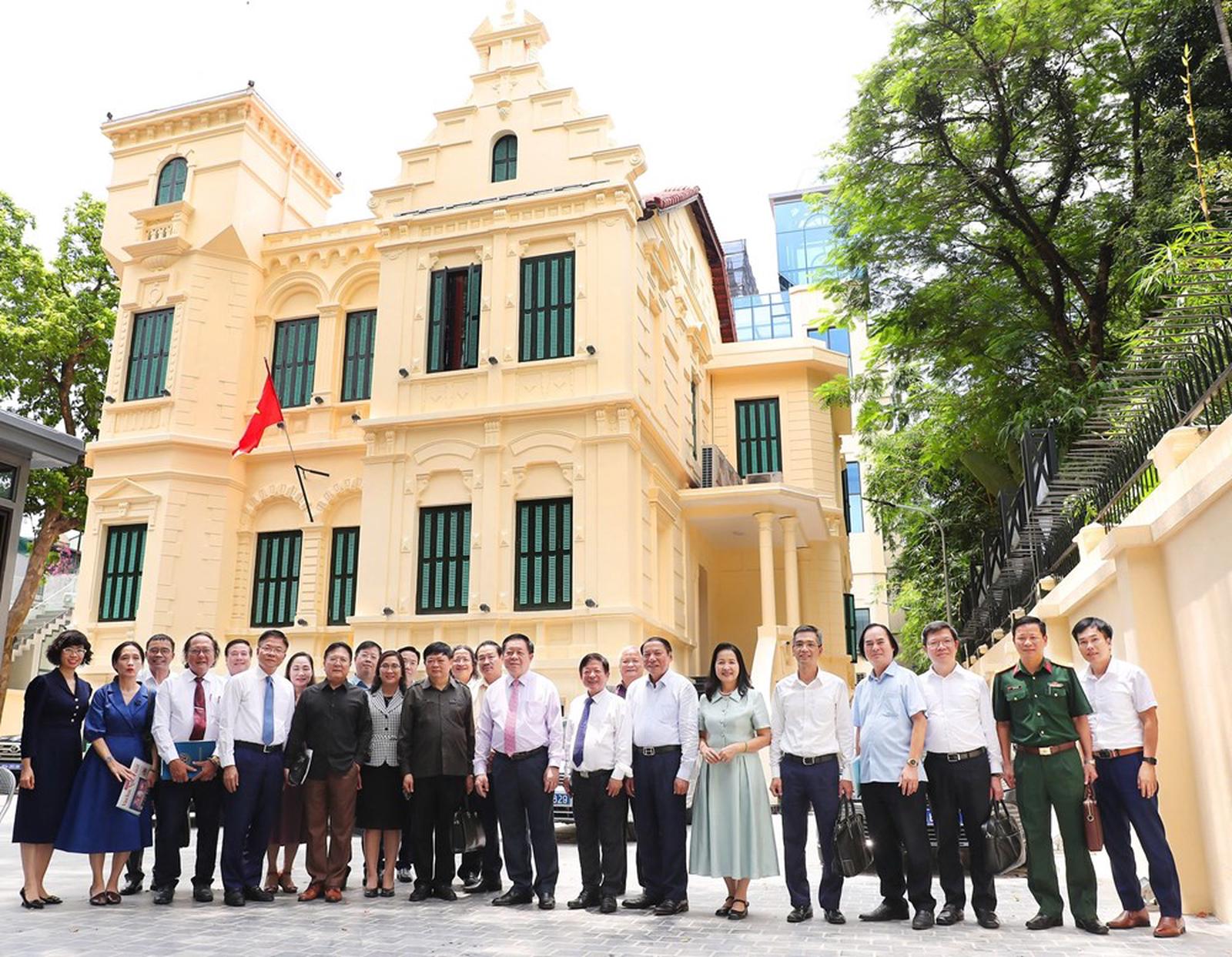Các đại biểu chụp ảnh lưu niệm tại trụ sở mới của Liên hiệp các Hội VHNT Việt Nam. Ảnh: PV