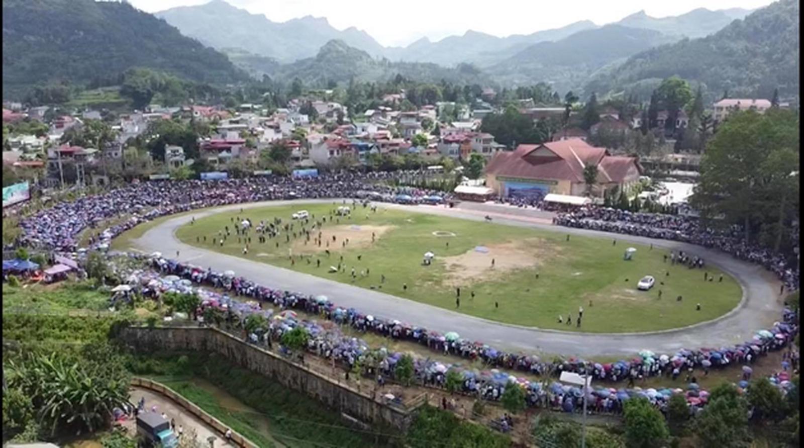 Hàng năm, lễ hội đua ngựa được tổ chức tại sân vận động trung tâm của huyện Bắc Hà. Ảnh: LC