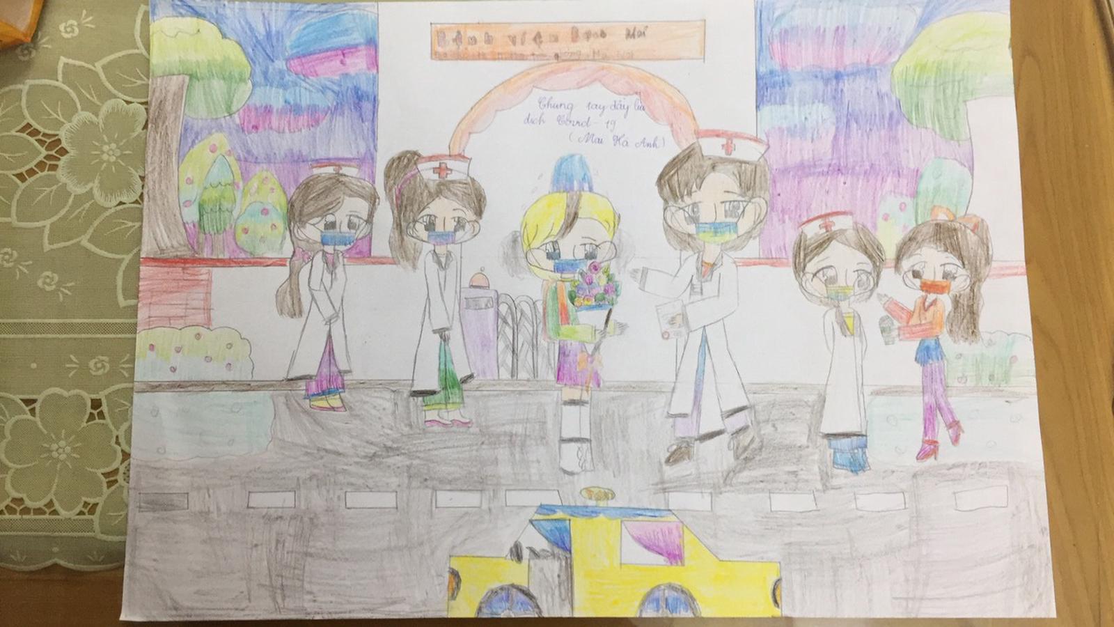Tranh cổ động của cháu Mai Hà Anh, lớp 5A7, Trường Tiểu học Bạch Đằng, quận Hồng Bàng, Hải Phòng