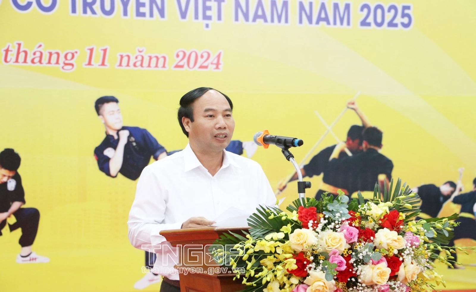 Đồng chí Nguyễn Văn Ngọc, Giám đốc Sở Văn hóa, Thể thao và Du lịch phát biểu Khai mạc Giải Võ cổ truyền tỉnh Thái Nguyên 2024 và triển khai Kế hoạch pháp triển Võ cổ truyền Việt Nam trên địa bàn tỉnh Thái Nguyên năm 2025