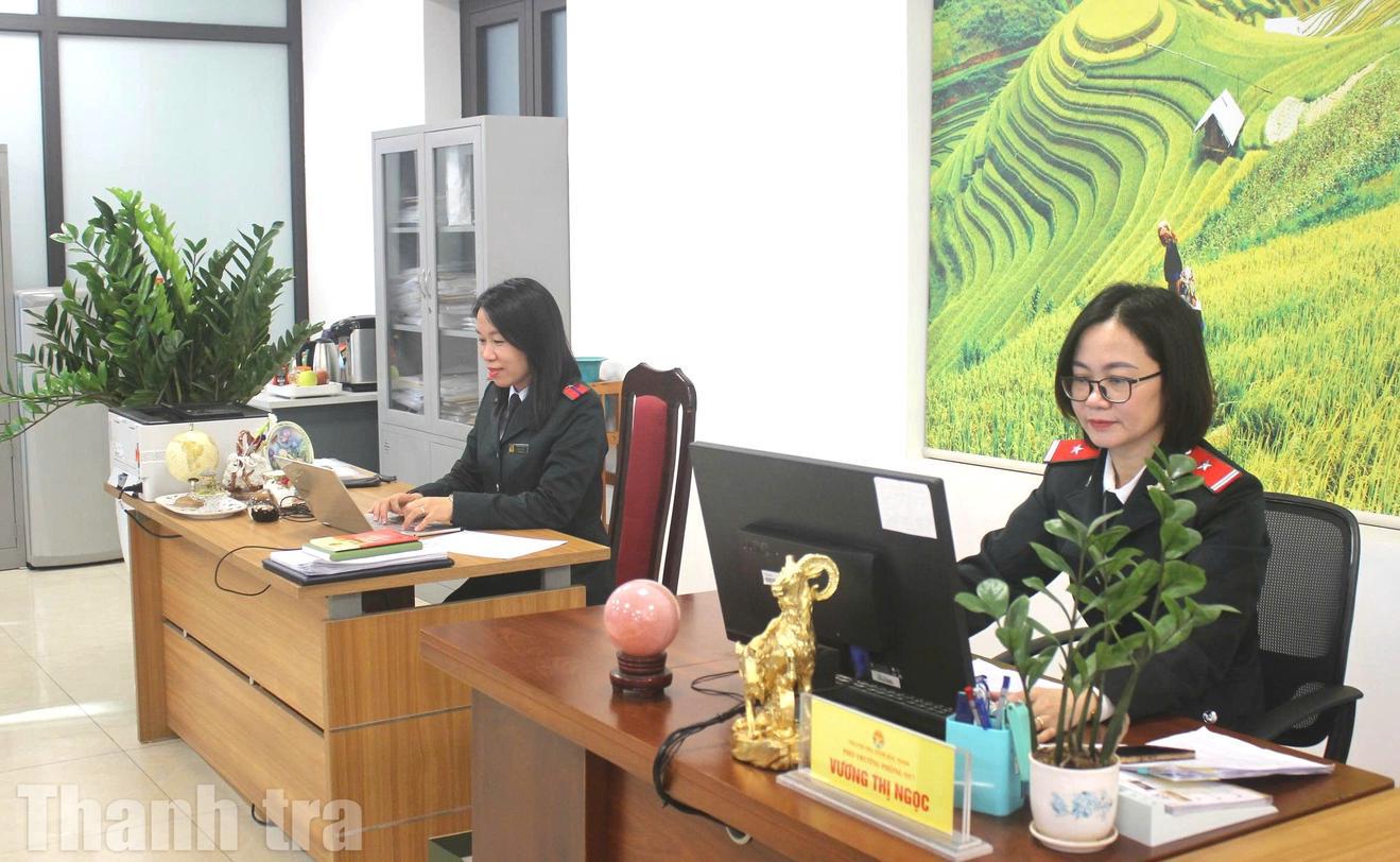 Cán bộ thanh tra sử dụng thành thạo công nghệ vào giải quyết nhiệm vụ. Ảnh: Duy Cường