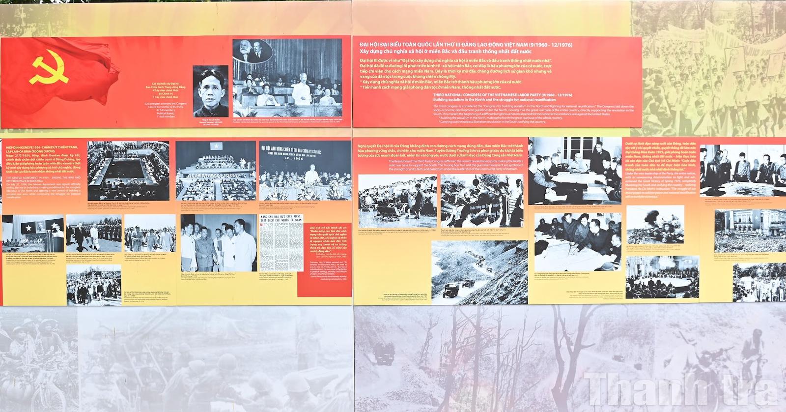 Triển lãm “Đảng Cộng sản Việt Nam - rực rỡ trang sử vàng” trưng bày 280 ảnh và tư liệu tiêu biểu về chặng đường 95 năm vinh quang của Đảng qua 13 kỳ Đại hội. Ảnh: Nam Nguyễn