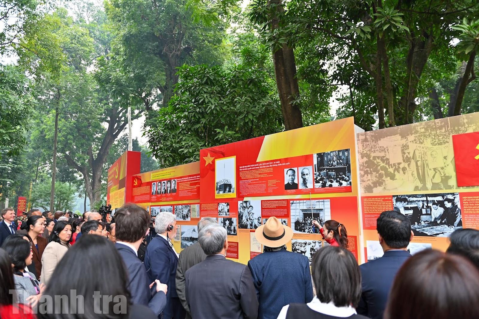 Nhân dân và khách quốc tế lắng nghe giới thiệu về chặng đường 95 năm vinh quang của Đảng Cộng sản Việt Nam tại Triển lãm “Đảng Cộng sản Việt Nam - rực rỡ trang sử vàng”. Ảnh: Nam Nguyễn