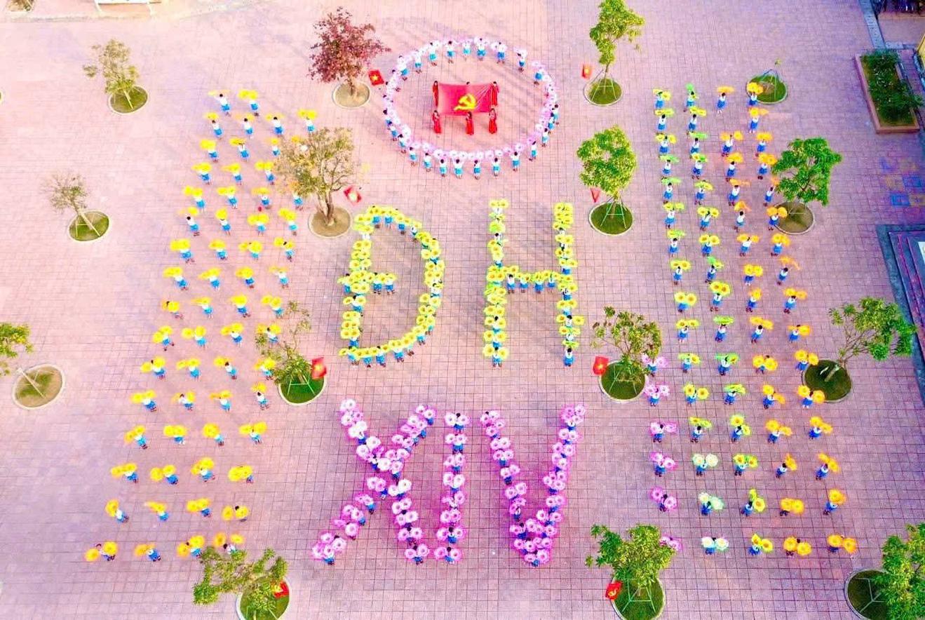 Từ bậc mầm non đến THPT, các nhà trường đã tổ chức nhiều hoạt động ý nghĩa, phù hợp với lứa tuổi như đồng diễn thể dục, múa hát tập thể, xếp hình nghệ thuật mang biểu tượng búa liềm, quốc kỳ, bản đồ Tổ quốc và các khẩu hiệu chào mừng Đại hội XIV.