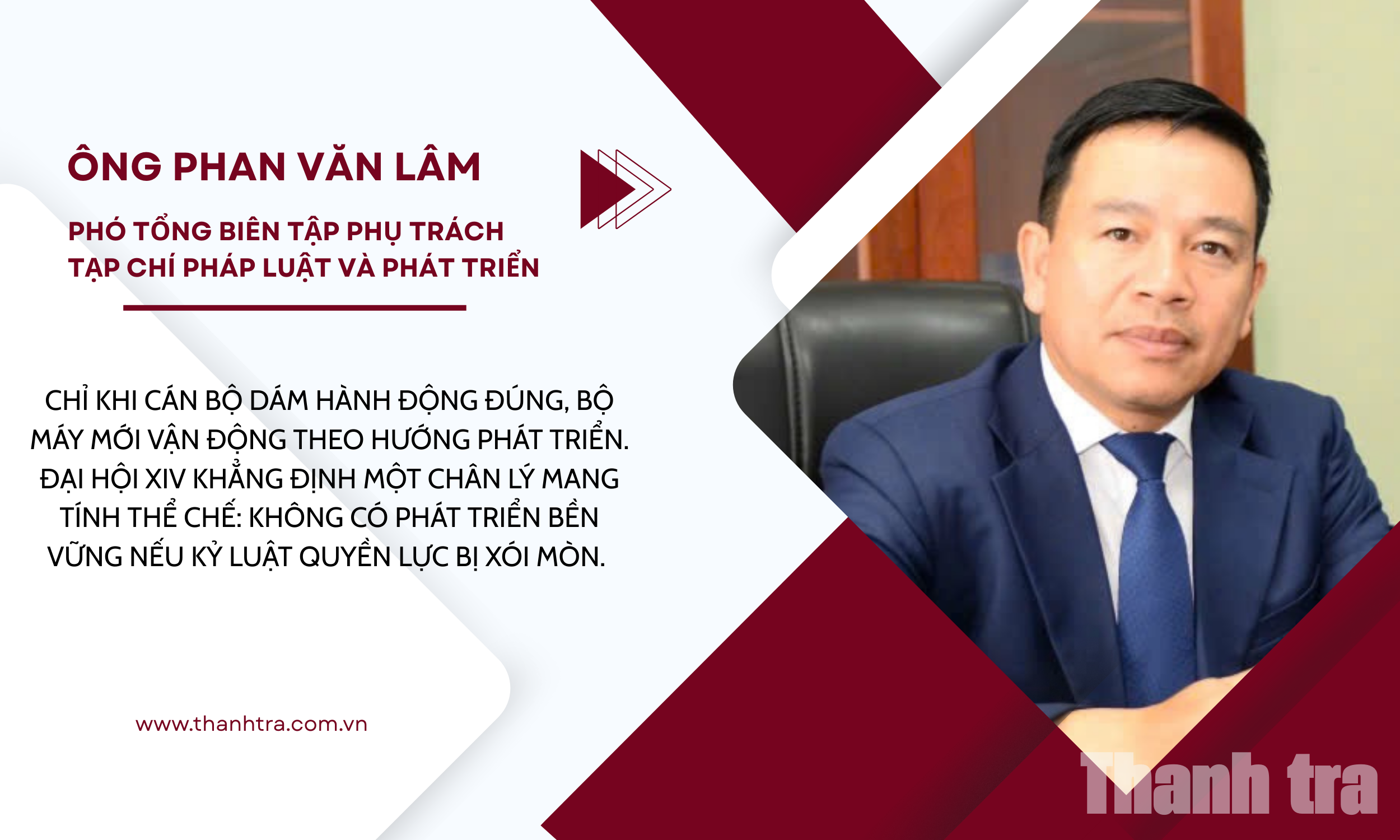 Trao đổi với Báo Thanh tra, ông Phan Văn Lâm, Phó Tổng Biên tập phụ trách Tạp chí Pháp luật và Phát triển luận giải sức lan tỏa của tinh thần Đại hội XIV, đồng thời chỉ ra những điểm nghẽn cần tháo gỡ và những điều kiện then chốt để khát vọng phát triển trở thành động lực thực sự.