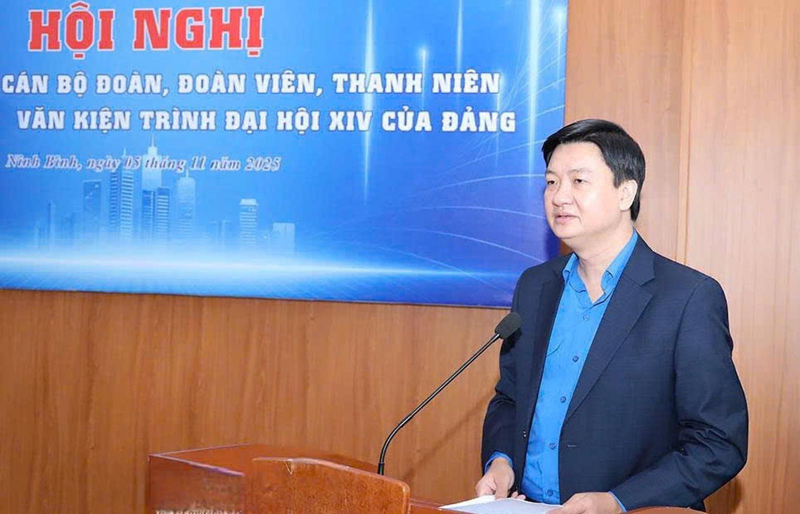 Phó Chủ tịch Ủy ban MTTQ Việt Nam tỉnh, Bí thư Tỉnh đoàn Ninh Bình phát biểu kết luận hội nghị. Ảnh: Báo Ninh Bình