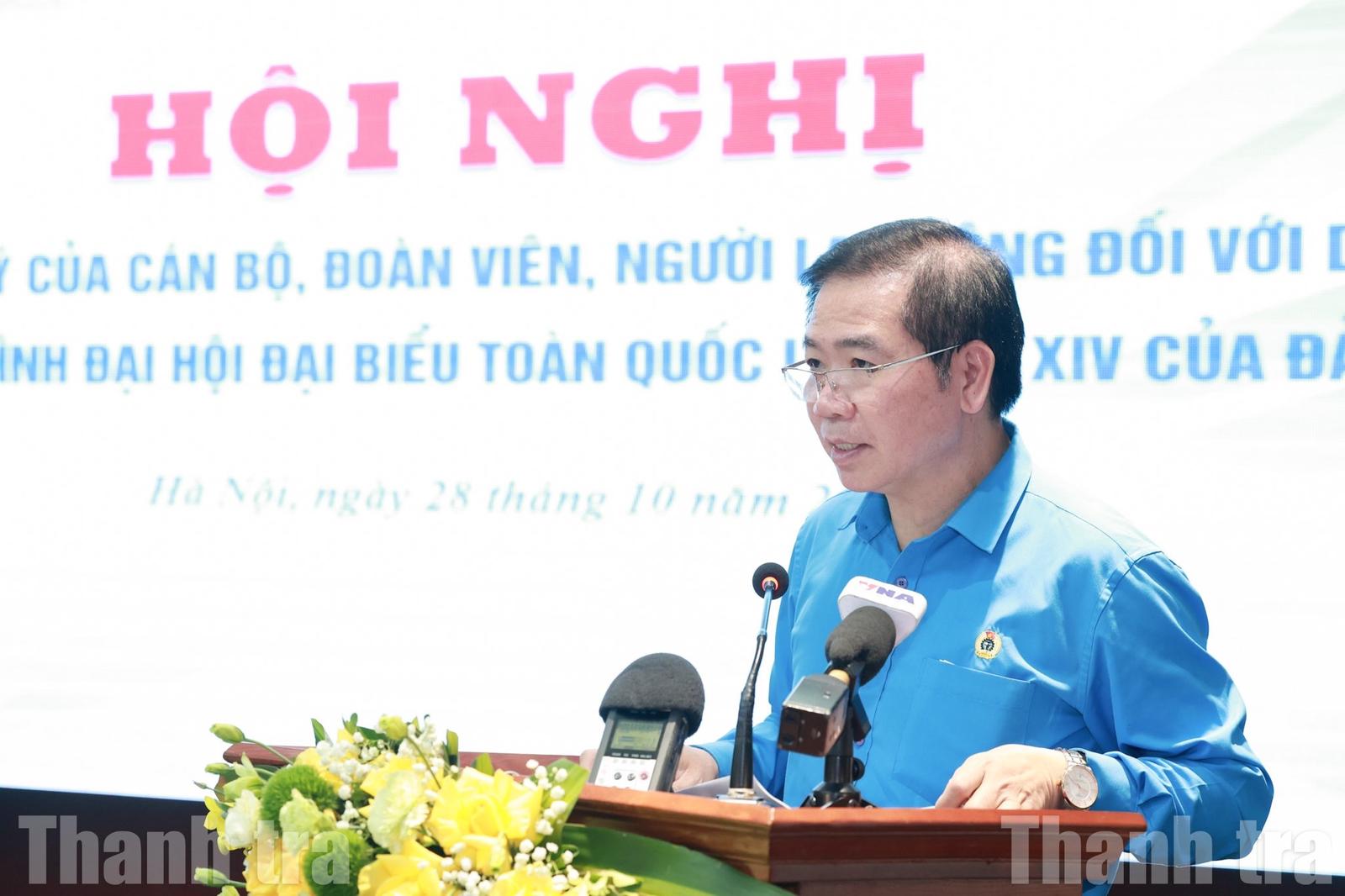 Phát biểu tại Hội nghị, đồng chí Ngọ Duy Hiểu - Phó Bí thư Thường trực Đảng ủy, Phó Chủ tịch Tổng LĐLĐ Việt Nam nhấn mạnh đây là sự kiện quan trọng, là diễn đàn chính trị để phát huy trí tuệ của cán bộ, đoàn viên, thể hiện trách nhiệm của cán bộ, đoàn viên, NLĐ đối với công tác xây dựng Đảng.