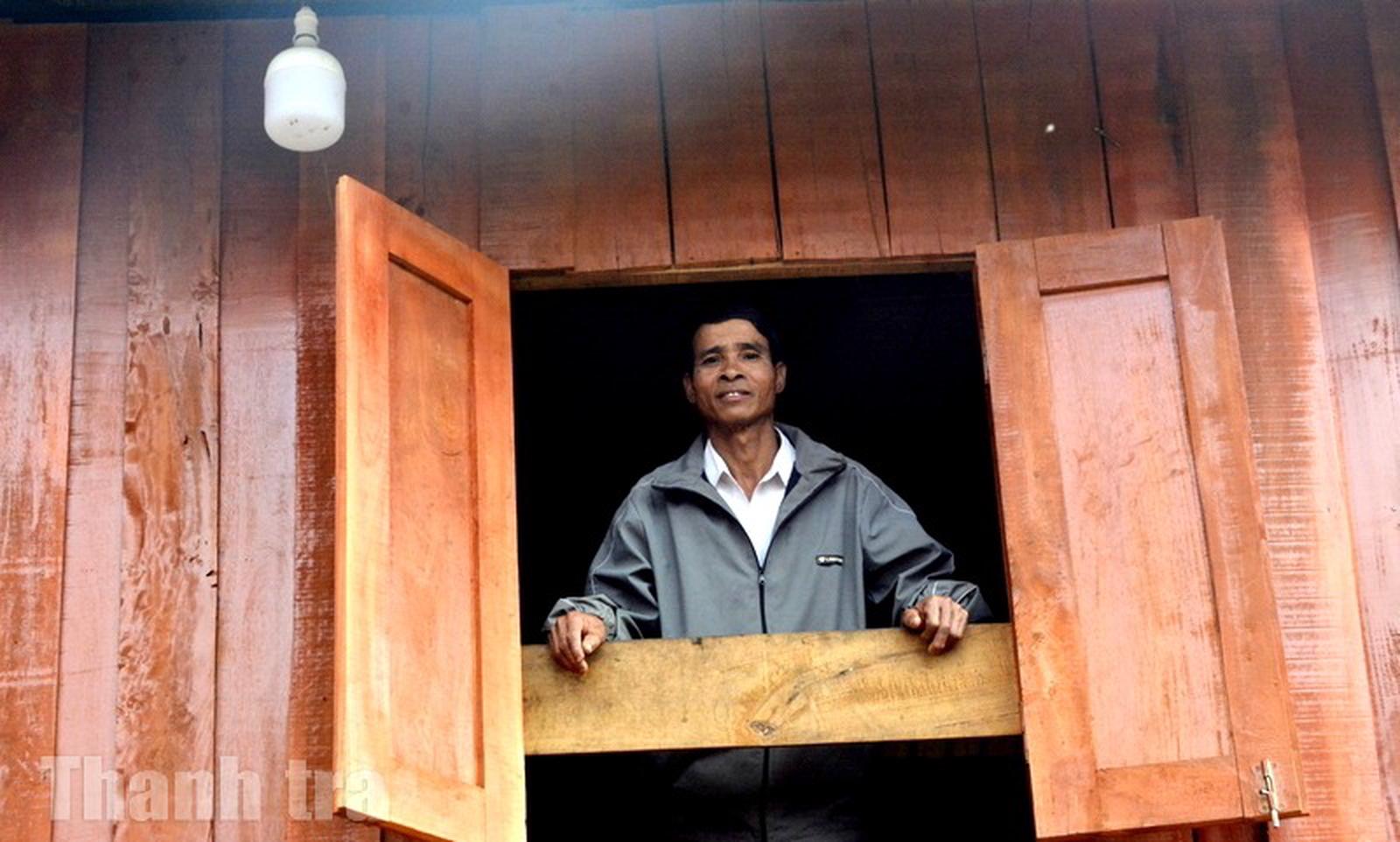 Căn nhà mới của già làng Hồ Văn Amo giúp gia đình an cư, yên tâm bám bản, bám rừng. Ảnh: Minh Tân