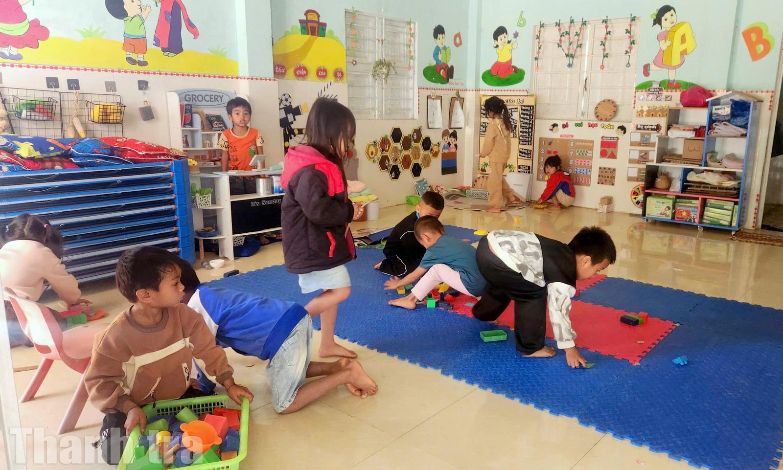 Những đứa trẻ trong lớp học mầm non khang trang được xây dựng tại thôn Tri, xã Hướng Lập. Ảnh: Minh Tân