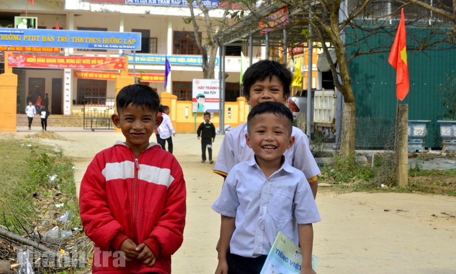 Con em đồng bào Vân Kiều ở Hướng Lập ngày càng có điều kiện đến trường đầy đủ hơn. Ảnh: Minh Tân