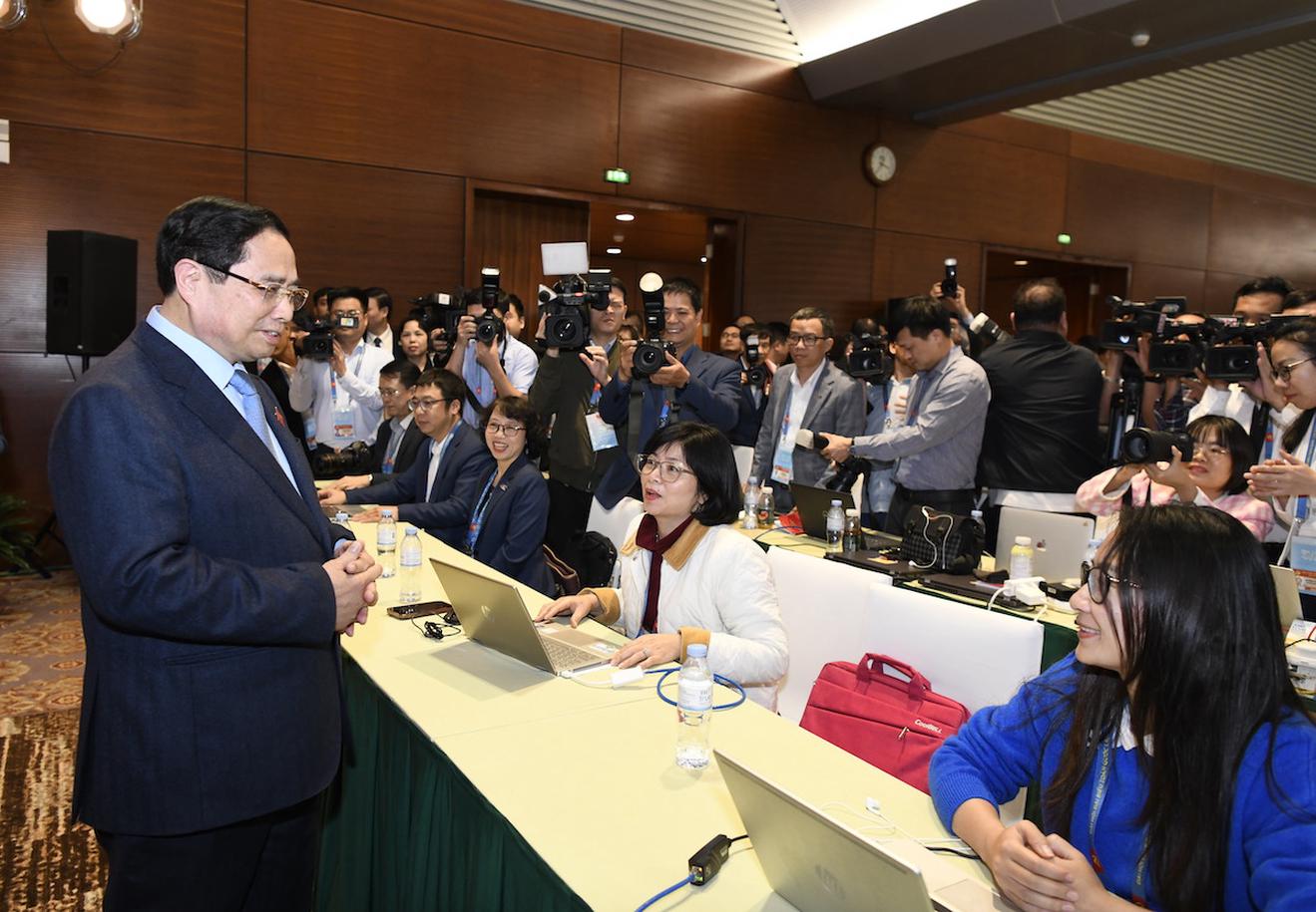 Thủ tướng thăm hỏi các phóng viên về điều kiện tác nghiệp, sinh hoạt trong thời gian diễn ra Đại hội XIV.