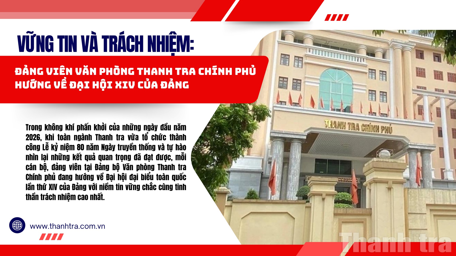 Hướng tới Đại hội XIV của Đảng với niềm tự hào về truyền thống 80 năm vẻ vang của ngành Thanh tra, các đảng viên Đảng bộ Văn phòng Thanh tra Chính phủ tiếp tục rèn luyện bản lĩnh chính trị, nâng cao năng lực chuyên môn, giữ vững kỷ cương, kỷ luật, xứng đáng với niềm tin của Đảng và Nhân dân. Tin tưởng rằng, những định hướng chiến lược từ Đại hội sẽ là kim chỉ nam để ngành Thanh tra vững bước trong kỷ nguyên mới, đóng góp tích cực vào sự nghiệp xây dựng đất nước Việt Nam phát triển, hùng cường và thịnh vượng.