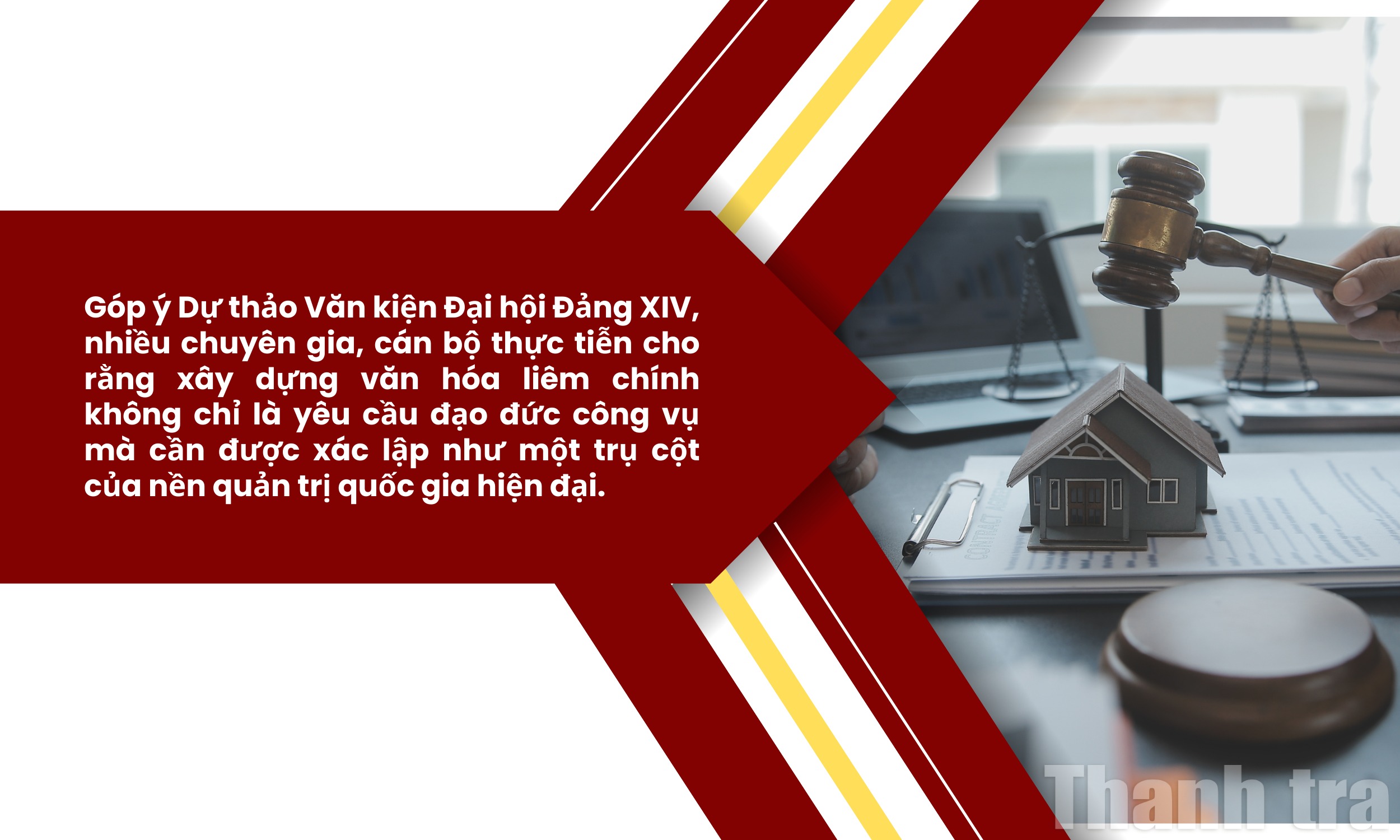 Dự thảo Văn kiện Đại hội Đảng XIV nêu, “xây dựng văn hóa liêm chính, không tham nhũng, lãng phí, tiêu cực trong đội ngũ cán bộ, đảng viên, công chức, viên chức; có chế độ tiền lương và đãi ngộ phù hợp với cống hiến, tài năng để không muốn và không cần tham nhũng, tiêu cực”.