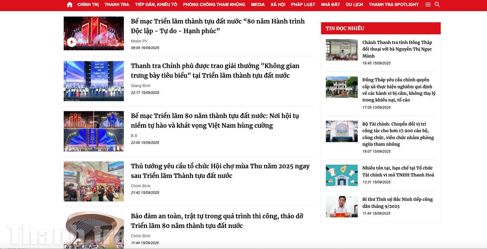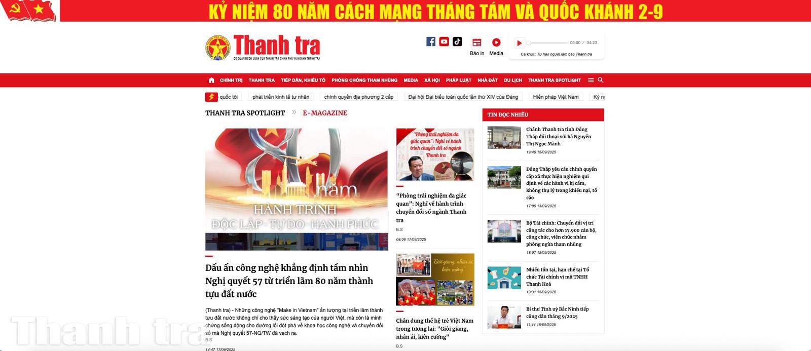 Báo Thanh tra luôn cập nhật kịp thời, nhanh chóng các bài viết, tin tức liên quan xuyên suốt thời gian diễn ra sự kiện A80. Ảnh: Báo Thanh tra