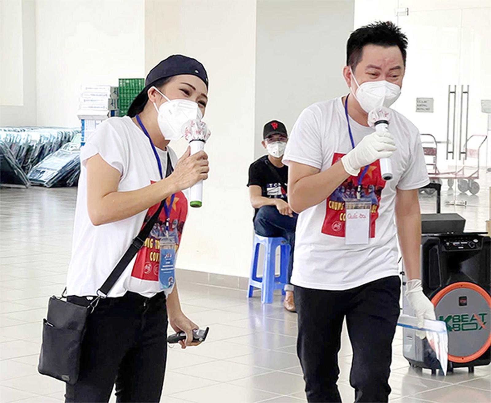 Ca sĩ Phương Thanh và Quốc Đại hát tại khu cách ly phục vụ bệnh nhân Covid-19. Ảnh: Long Khánh/http://baodongnai.com.vn