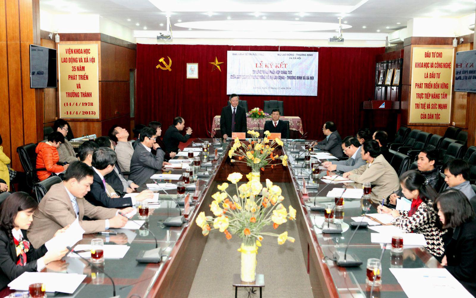 (Thanh tra) - Sáng 12/12, Bộ Lao động, Thương binh và Xã hội (Bộ LĐ-TBXH) tiến hành ký kết Chương trình Phối hợp công tác với Ban Kinh tế Trung ương. Thứ trưởng Bộ LĐ-TBXH Nguyễn Trọng Đàm, Phó Trưởng ban Kinh tế Trung ương Đinh Văn Cương cùng tham dự Lễ ký.