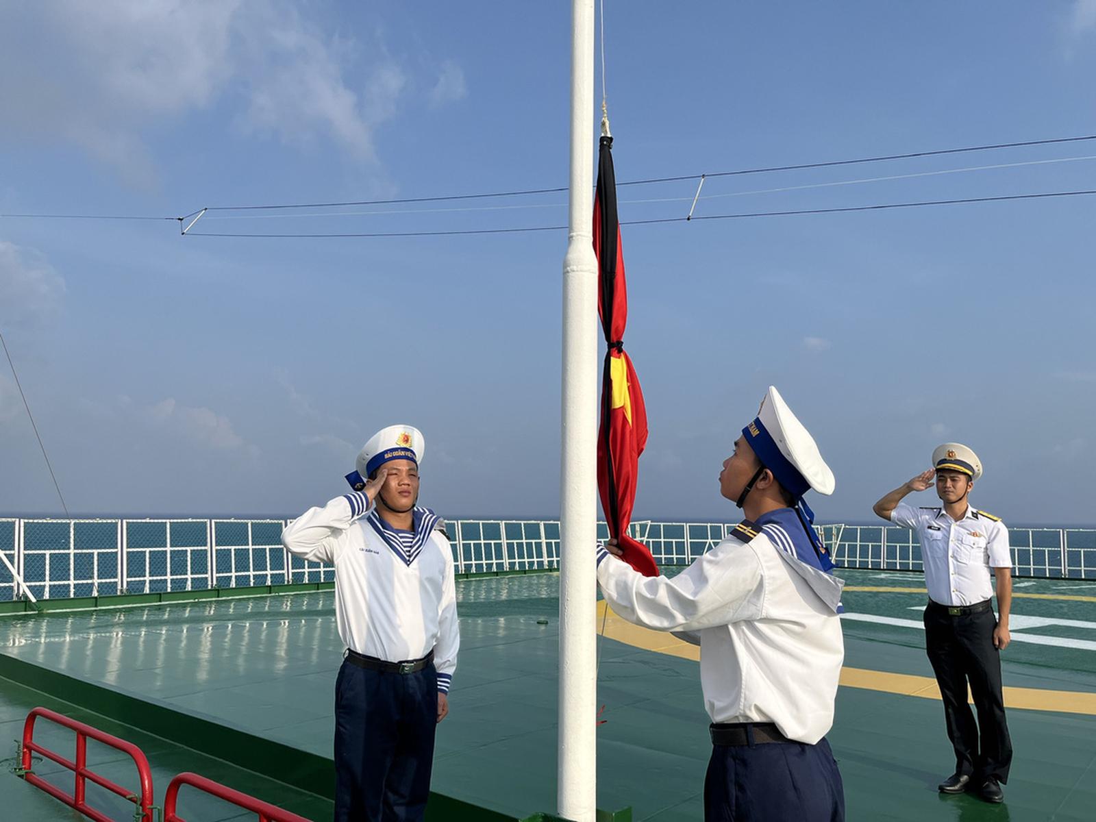 Cán bộ chiến sĩ nhà giàn DK1/9 lập bàn thờ, kính viếng Tổng Bí thư Nguyễn Phú Trọng. Ảnh: DK1 cung cấp/https://tuoitre.vn/
