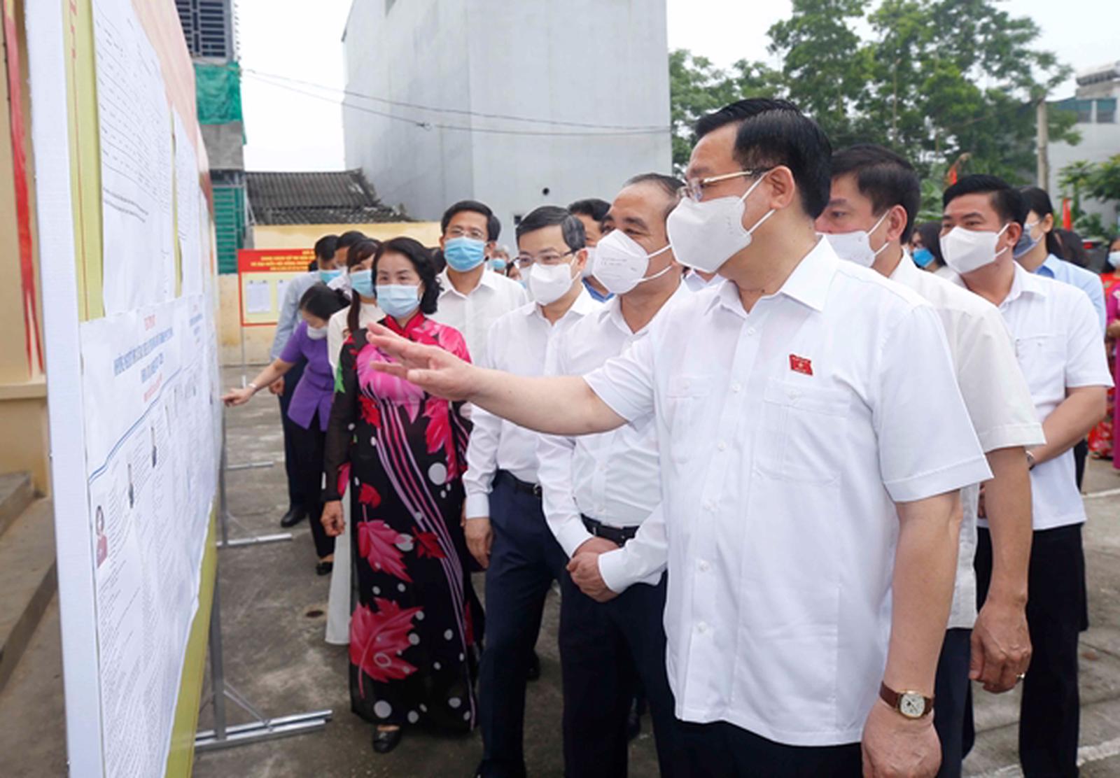Chủ tịch Quốc hội Vương Đình Huệ kiểm tra công tác chuẩn bị bầu cử ở Tuyên Quang. Ảnh: D. Tấn