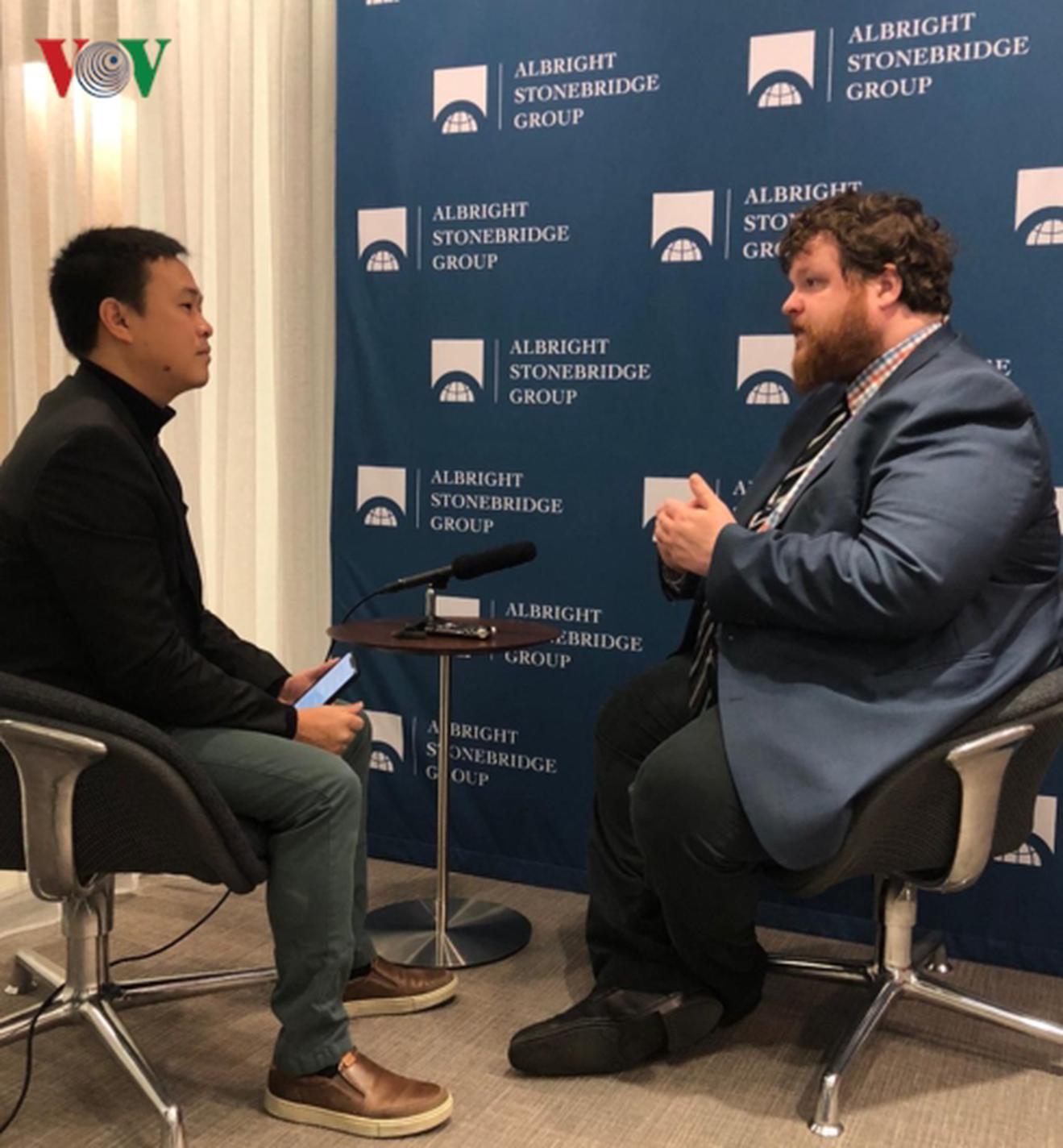 Phóng viên Đài TNVN thường trú tại Mỹ, có cuộc trao đổi với Anthony Nelson, Giám đốc phụ trách các vấn đề Đông Á và Thái Bình dương tại Tập đoàn Tư vấn Albright Stonebridge của Mỹ.