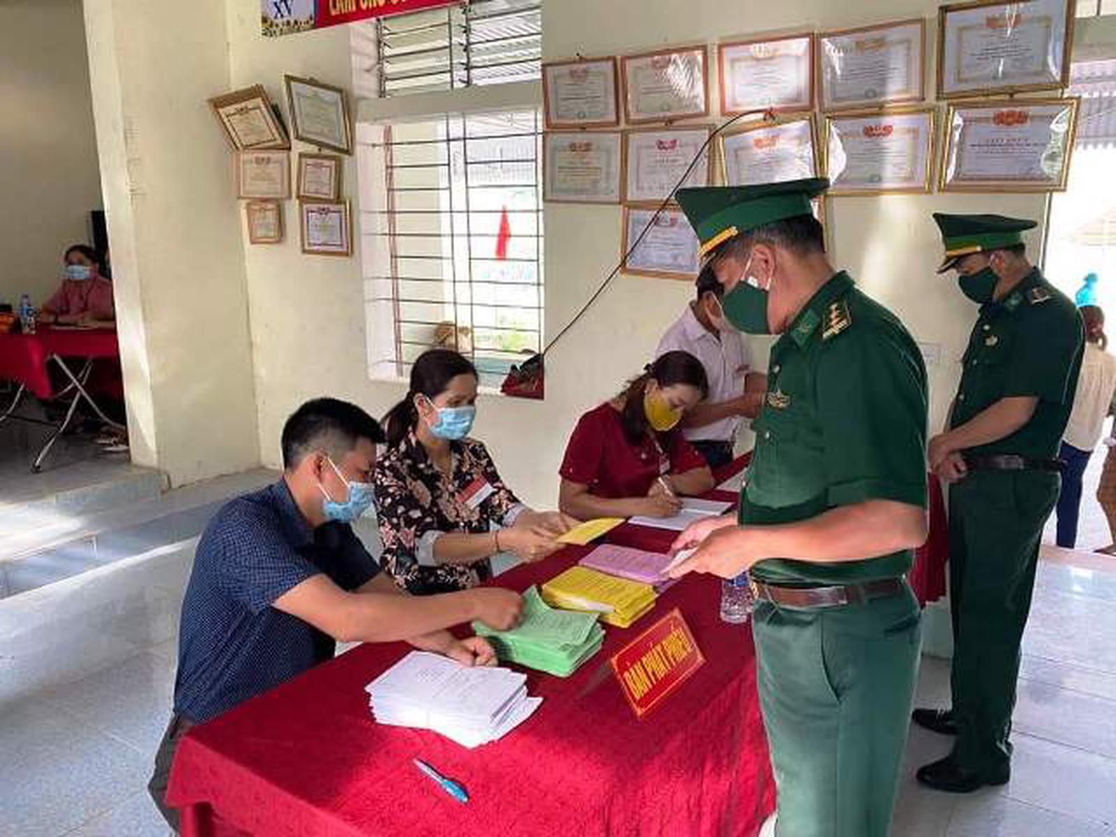 Cử tri các xã biên giới Nghệ An đi bỏ phiếu sớm. Ảnh: Hoàng Thông