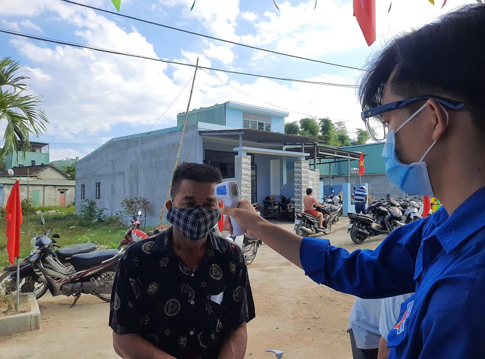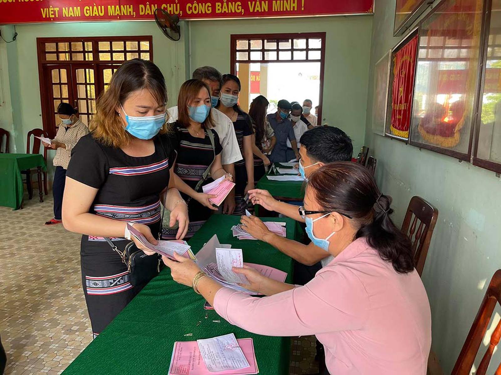 Cử tri vào các điểm bỏ phiếu được lực lượng chức năng đo thân nhiệt, hướng dẫn khai báo y tế xong, rửa tay bằng dung dịch sát khuẩn rồi xếp hàng giữ khoảng cách từ 1 - 2m vào bàn nhận phiếu bầu; lựa chọn đại biểu và bỏ phiếu vào thùng; sau đó đi ra bằng đường riêng, tránh tiếp xúc với các cử tri mới đi vào.