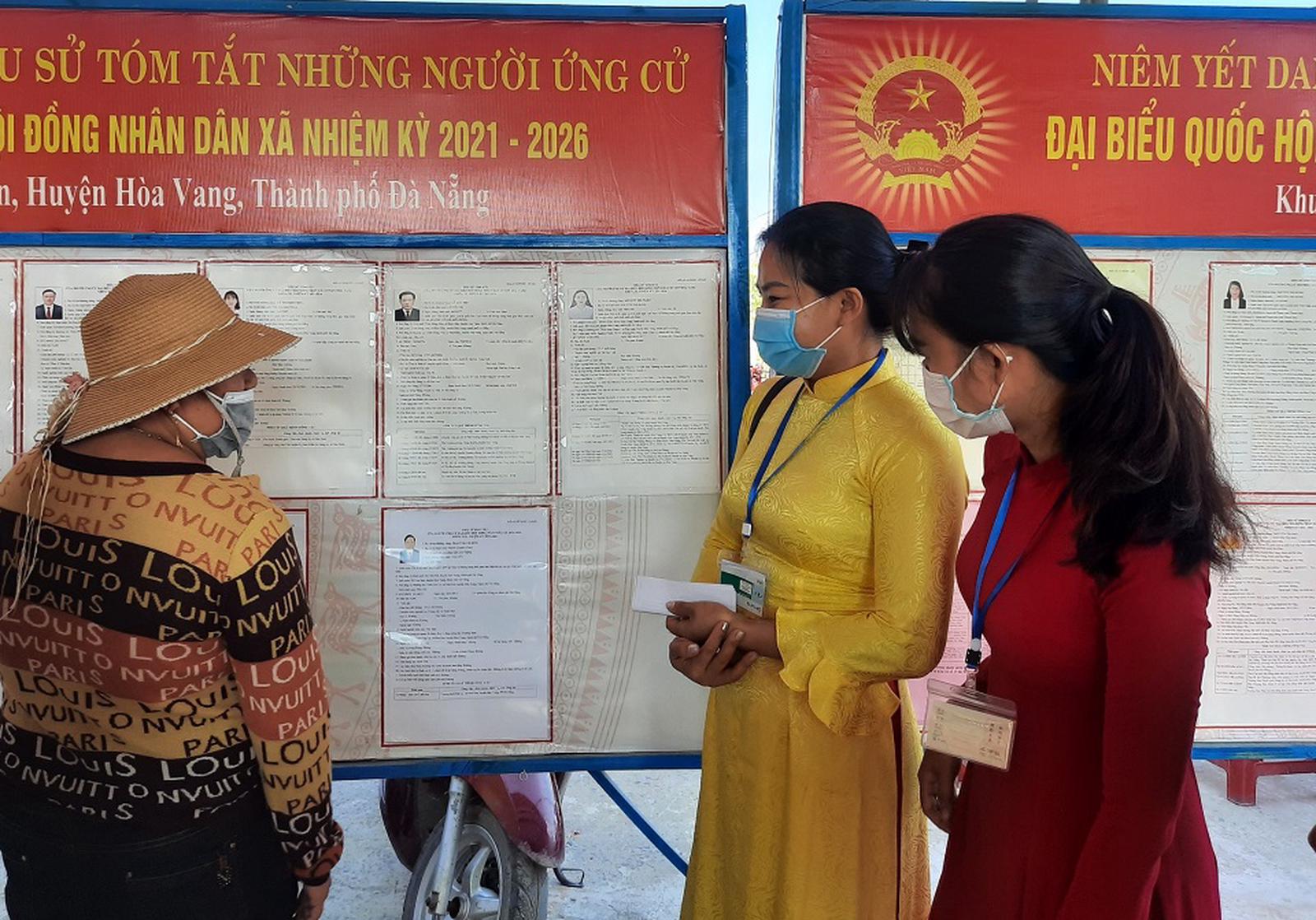 Tại khu vực bỏ phiếu số 10, thôn Đại La, xã Hòa Sơn, huyện Hòa Vang, Đà Nẵng, tổ bầu cử đã niêm yết đầy đủ danh sách cử tri, tiểu sử của các ứng cử viên. Tại đây, công tác phòng, chống dịch cũng được đặt lên hàng đầu.