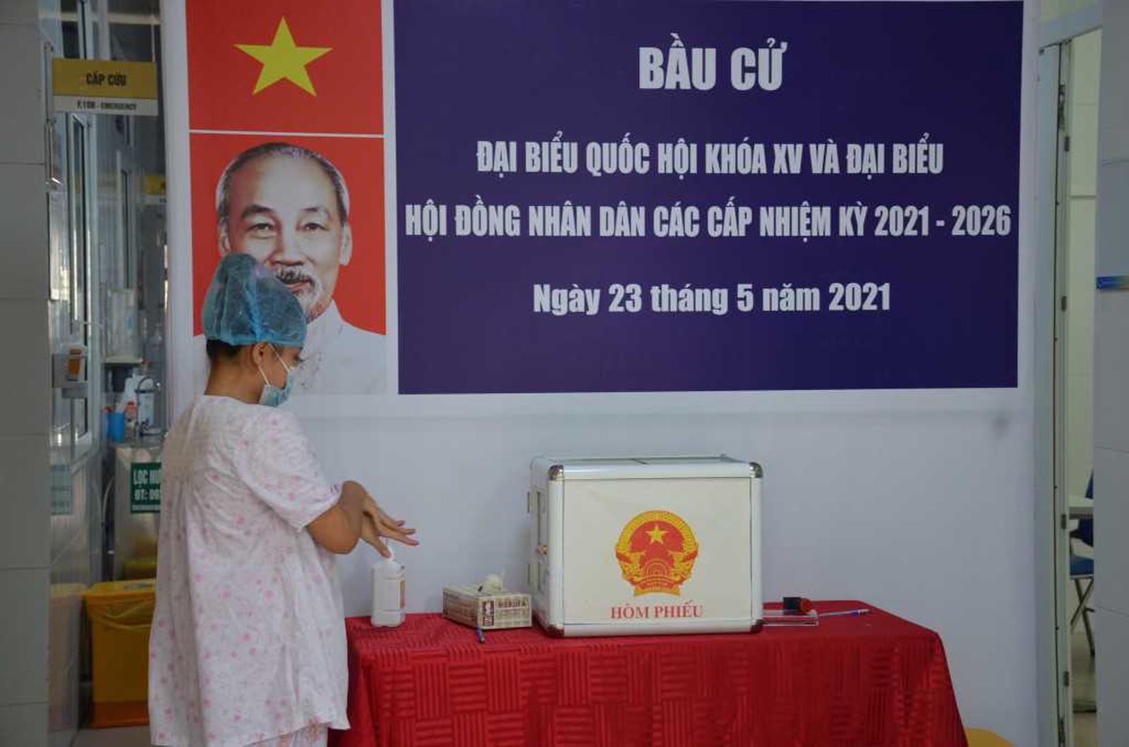 Trước khi bỏ phiếu, cử tri trong khu cách ly đều sát khuẩn tay, đeo găng tay để bỏ phiếu. Ảnh: TTTT