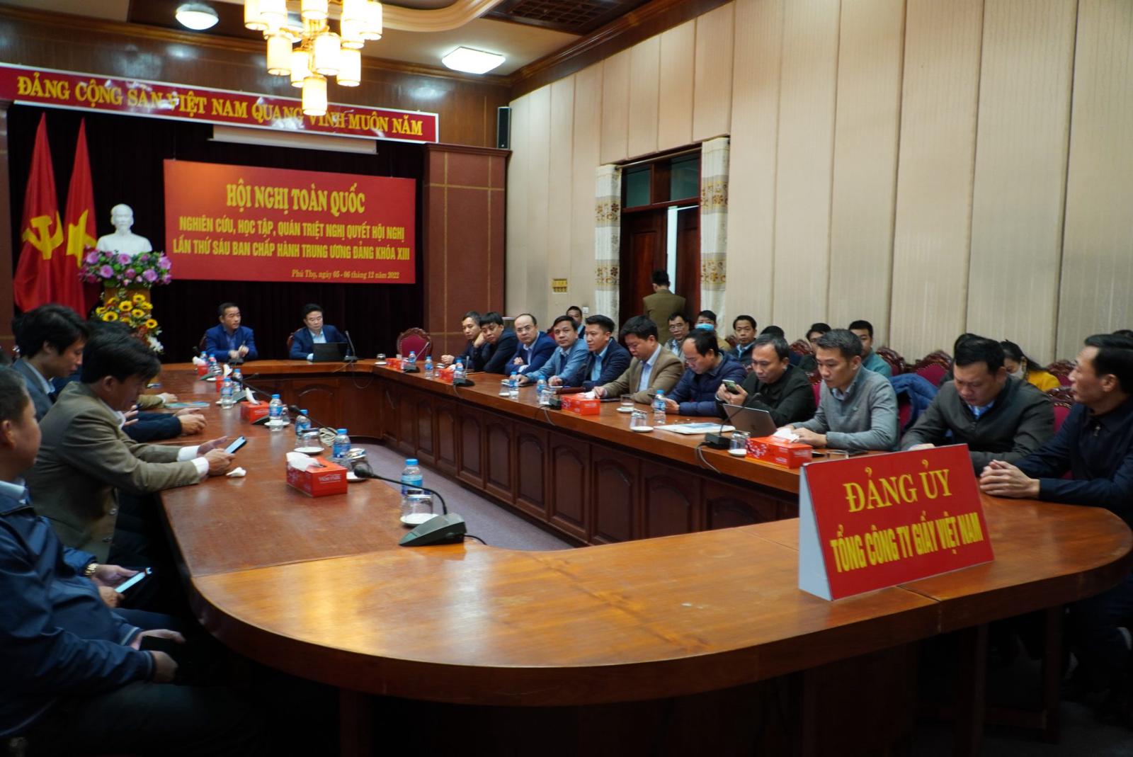 Thành phần tham dự tại 2 điểm cầu của Đảng ủy Tổng công ty Giấy Việt Nam gồm các đồng chí Ủy viên Ban Chấp hành Đảng bộ, Ủy viên Ủy ban Kiểm tra Đảng ủy Tổng công ty; Chủ tịch và các Thành viên Hội đồng Thành viên, Tổng Giám đốc và các Phó Tổng giám đốc, Kiểm soát viên Tổng công ty; Trưởng, Phó các cơ quan tham mưu, giúp việc Đảng ủy Tổng công ty; Chủ tịch, Phó Chủ tịch Công đoàn, Chủ tịch, Phó Chủ tịch Hội Cựu Chiến binh, Bí thư, Phó Bí thư Đoàn Thanh niên Tổng Công ty; Bí thư, Phó Bí thư các chi, đảng bộ trực thuộc Đảng ủy Tổng công ty; Bí thư các chi bộ trực thuộc Đảng ủy cơ sở.