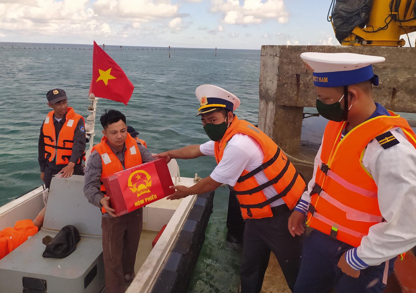 Tổ bầu cử sớm chuyển hòm phiếu lên đảo. Ảnh: Hoàng Triệu
