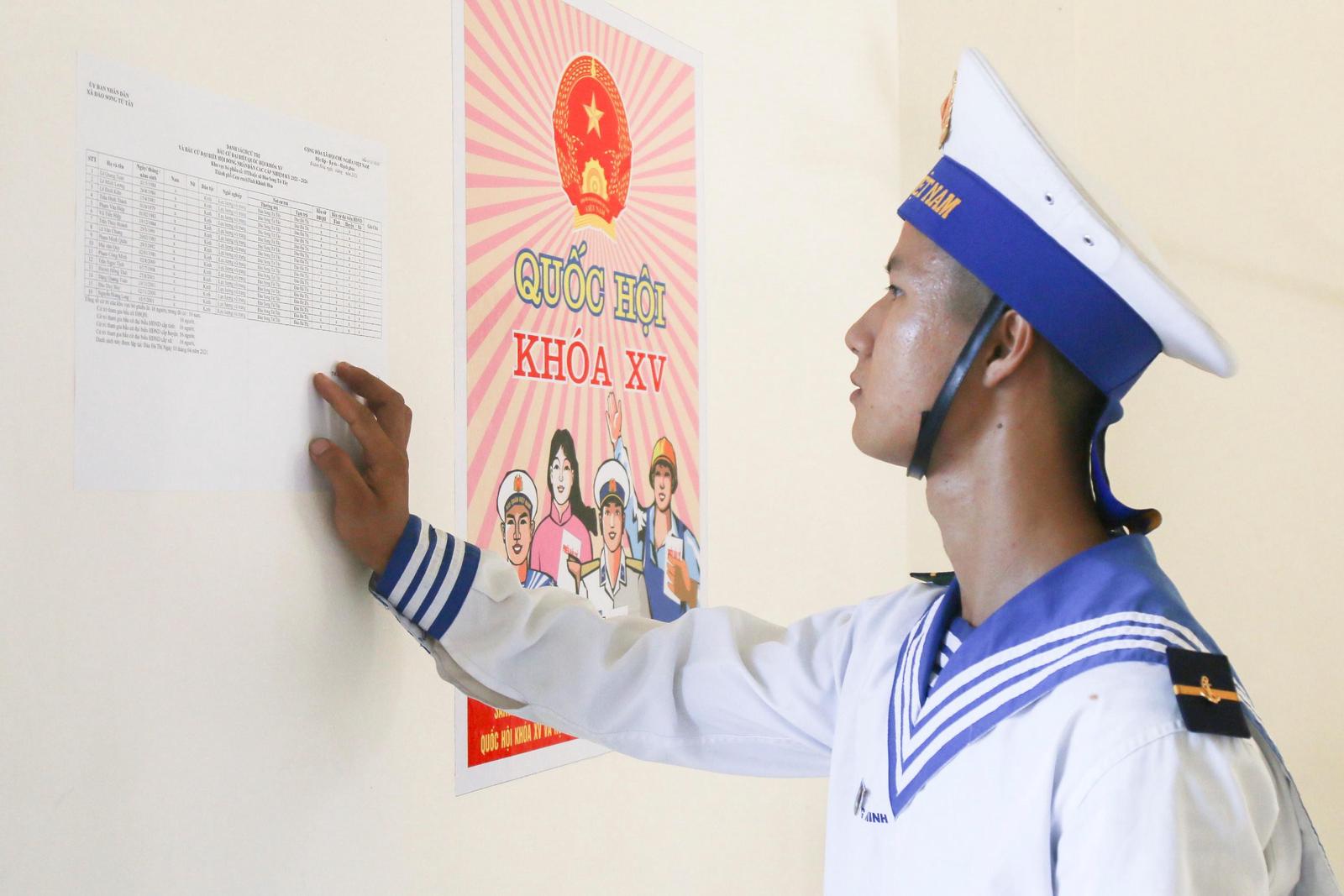 Sau khi khai mạc, những lá phiếu đầu tiên đã được phát cho các cử tri bỏ vào thùng phiếu. Giữa biển khơi, trên quần đảo tiền tiêu của Tổ quốc, cầm lá phiếu trên tay mỗi người có cung bậc cảm xúc khác nhau, nhưng đều có chung một niềm tin sẽ bầu được đại biểu ưu tú vào Quốc hội khoá XV và HĐND các cấp nhiệm kỳ 2021 - 2026.