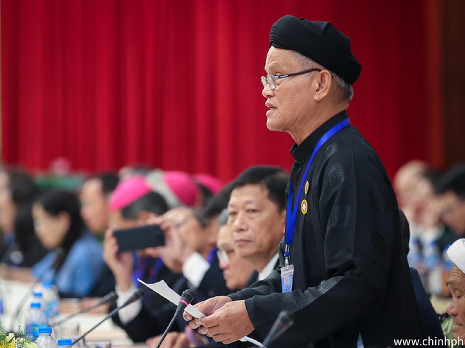 Hội nghị đã nghe nhiều ý kiến phát biểu đầy tâm huyết và trách nhiệm, rất sâu sắc và trí tuệ của các vị chức sắc, chức việc, đại diện các tổ chức tôn giáo và lãnh đạo các ban, bộ, ngành Trung ương nhằm triển khai thiết thực, hiệu quả hơn nữa chủ trương, chính sách, pháp luật về tín ngưỡng, tôn giáo của Đảng, Nhà nước ta trong thời gian tới.