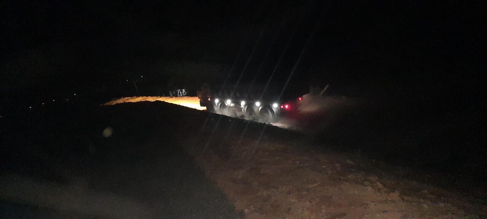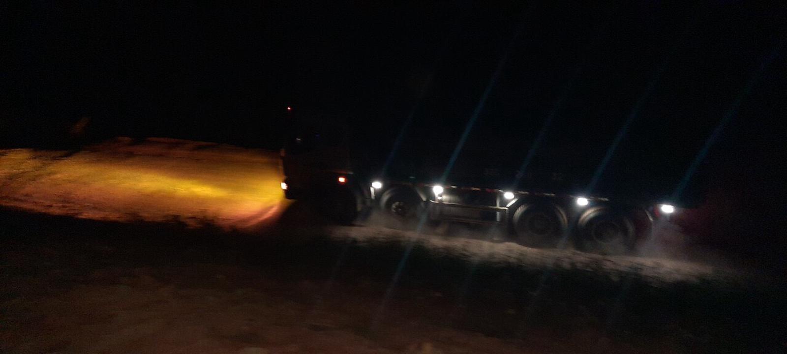 Xe chở cát quá tải vào ban đêm làm tuyến đường đê xuống cấp nhanh chóng. Ảnh: VT