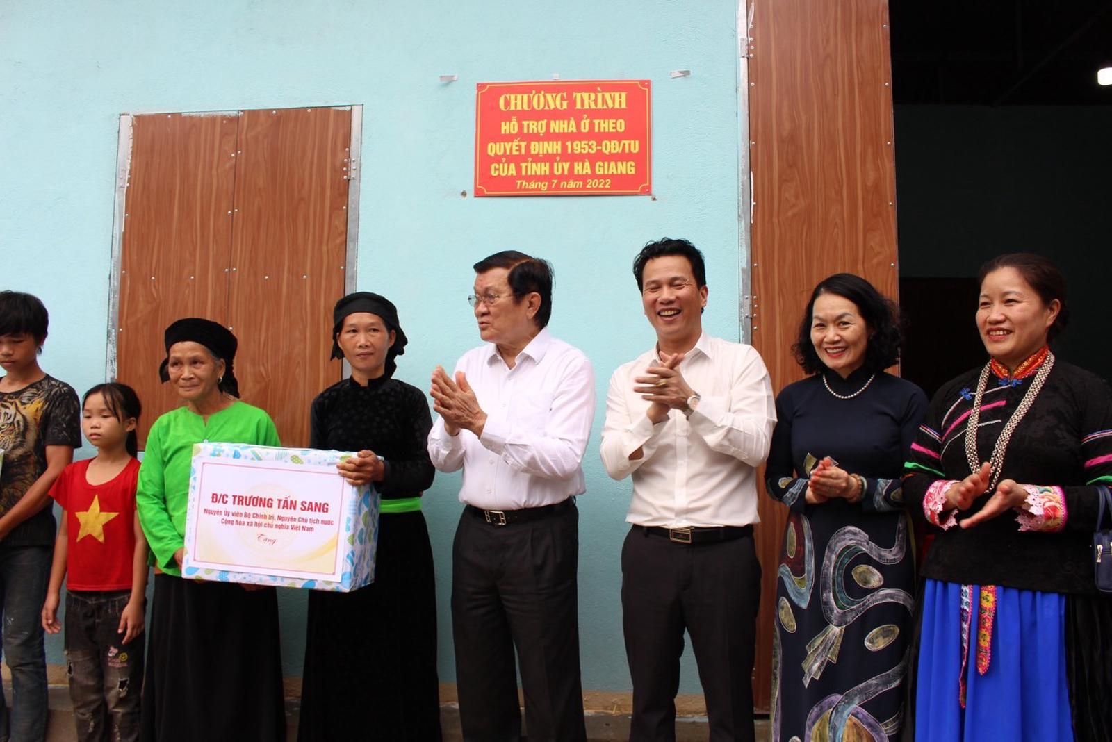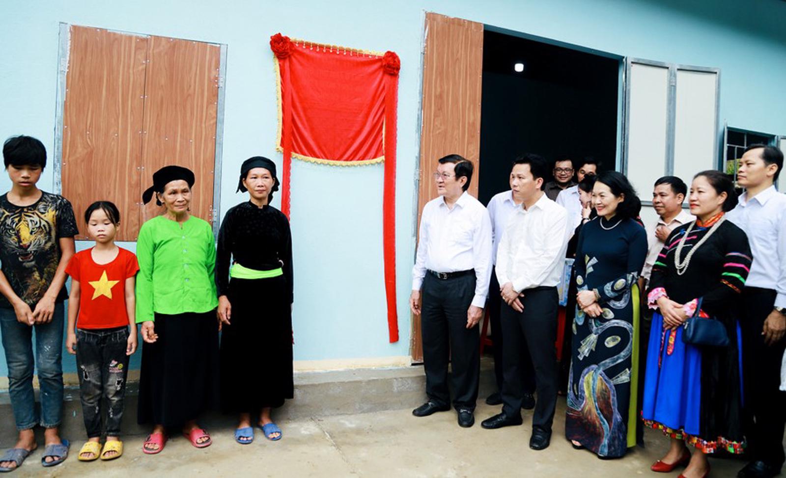 Nguyên Chủ tịch nước Trương Tấn Sang và Đoàn công tác tham gia Lễ khánh thành và trao nhà ở theo Quyết định 1953 của Tỉnh ủy cho gia đình bà Khấu Thị Đẹp, hộ nghèo thôn Bản Khén, xã Lạc Nông (Bắc Mê), tỉnh Hà Giang