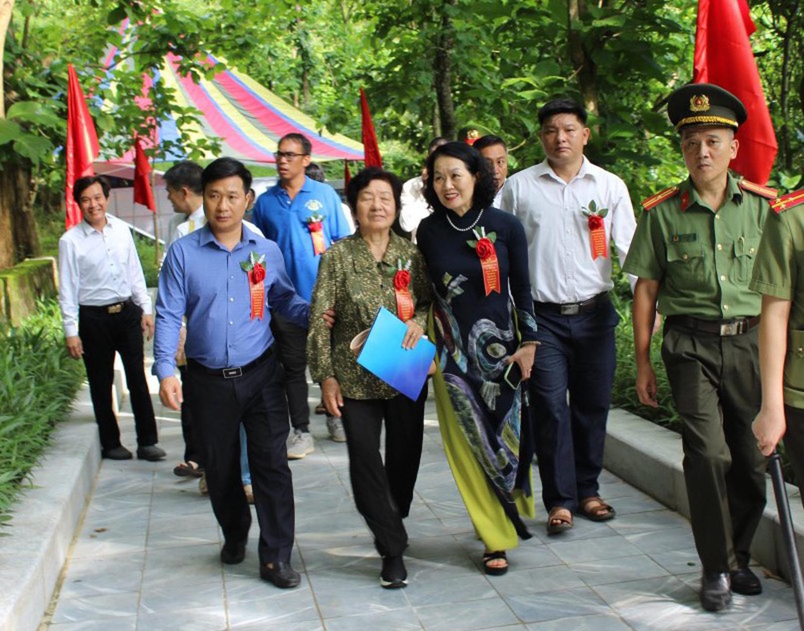 Nguyên Chủ tịch nước Trương Tấn Sang và Bí thư Tỉnh ủy Hà Giang Đặng Quốc Khánh cùng các đại biểu tới dự Lễ khánh thành
