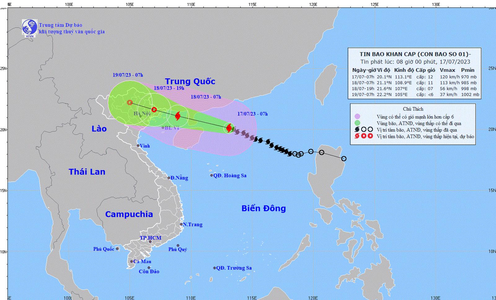 Theo tin từ Trung tâm Dự báo khí tượng thủy văn Trung ương, hồi 04 giờ ngày 17/7, vị trí tâm bão ở vào khoảng 20 độ Vĩ Bắc; 113,5 độ Kinh Đông, cách bán đảo Lôi Châu (Trung Quốc) khoảng 340km về phía Đông Đông Nam. Sức gió mạnh nhất vùng gần tâm bão mạnh cấp 11-12 (103-133km/giờ), giật cấp 15.