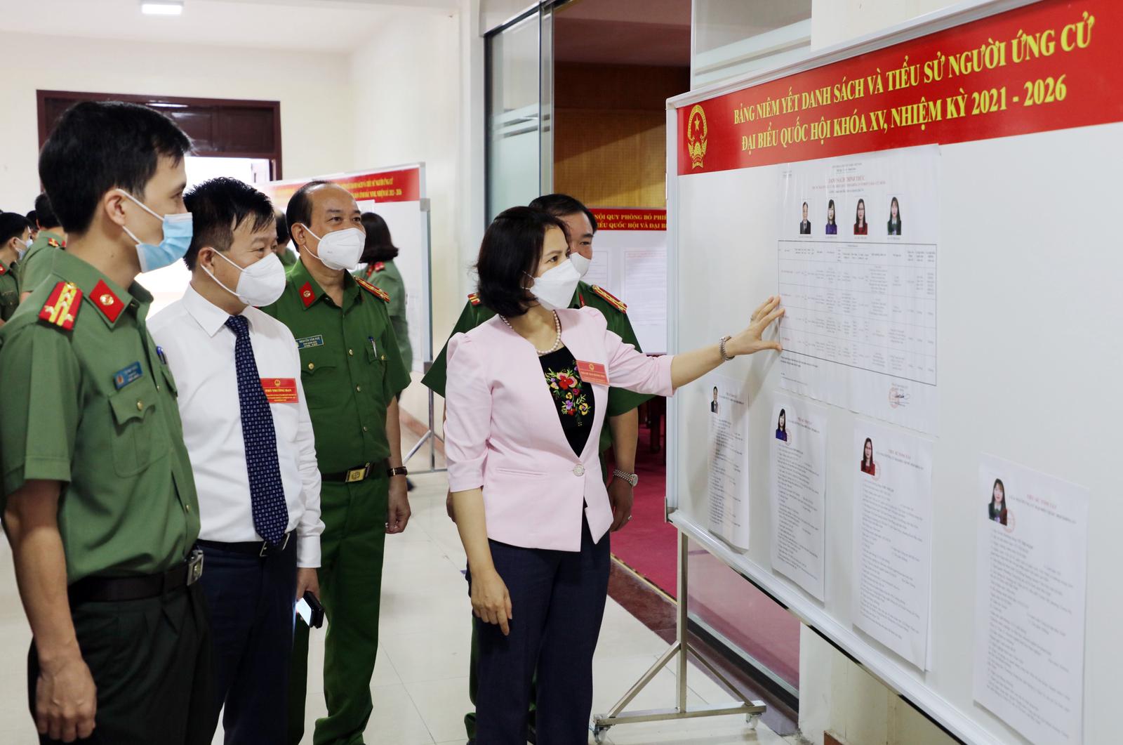 Chủ tịch UBND tỉnh Nguyễn Hương Giang đến kiểm tra công tác bầu cử tại Tổ bầu cử Công an tỉnh. Ảnh: S.T