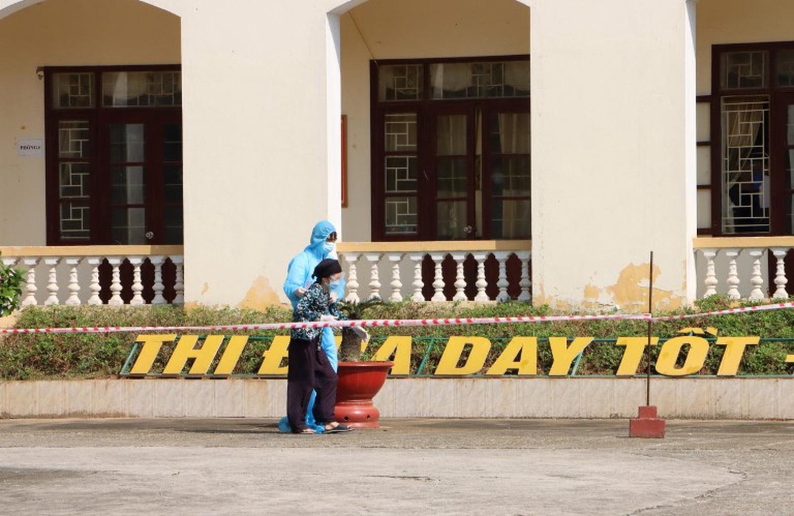 Lực lượng làm nhiệm vụ tại khu cách ly giúp đỡ cử tri cao tuổi đến bỏ phiếu bầu cử. Ảnh: PV